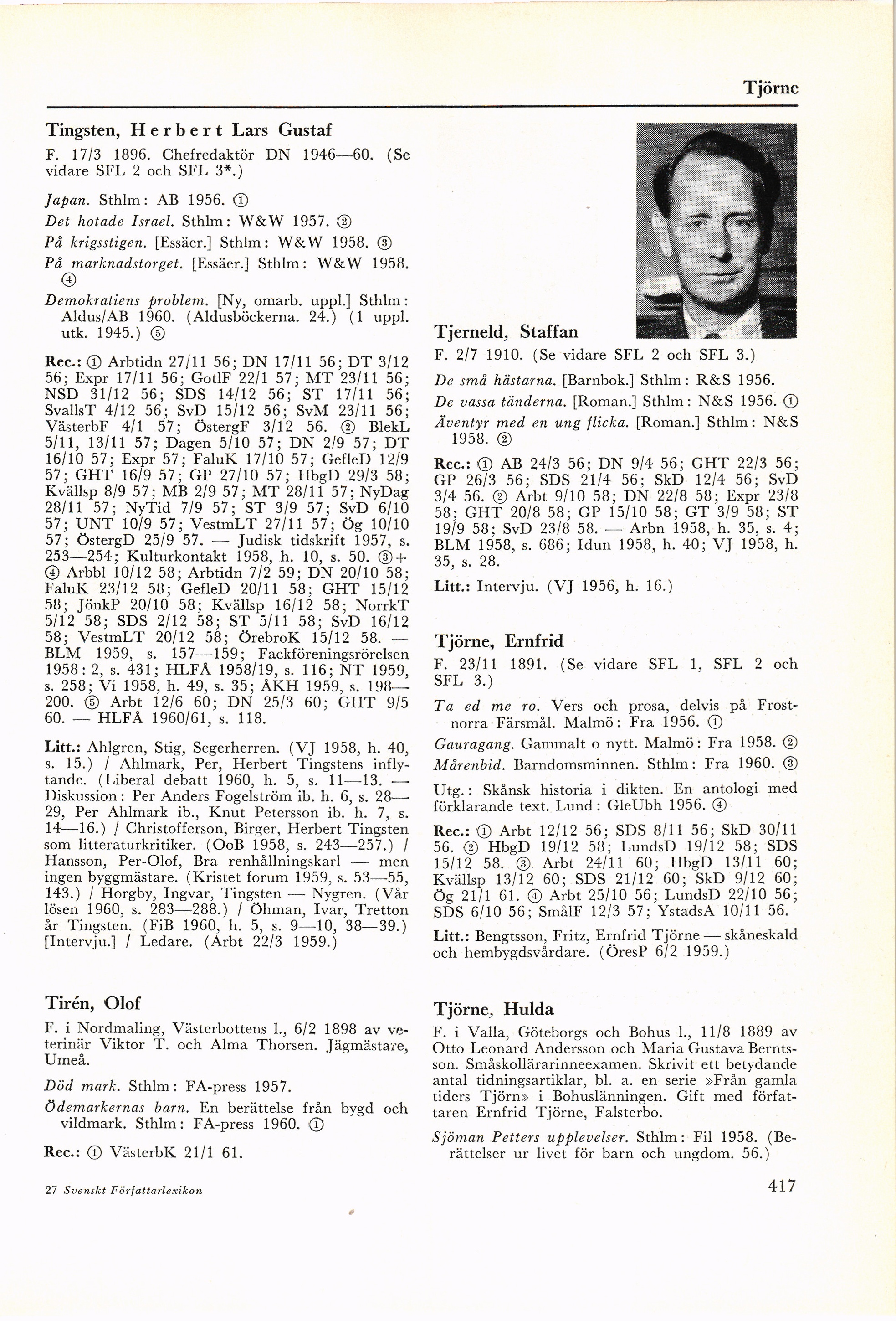 år Tingsten. (FiB 1960, h. 5, s. 9—10, 38—39.)