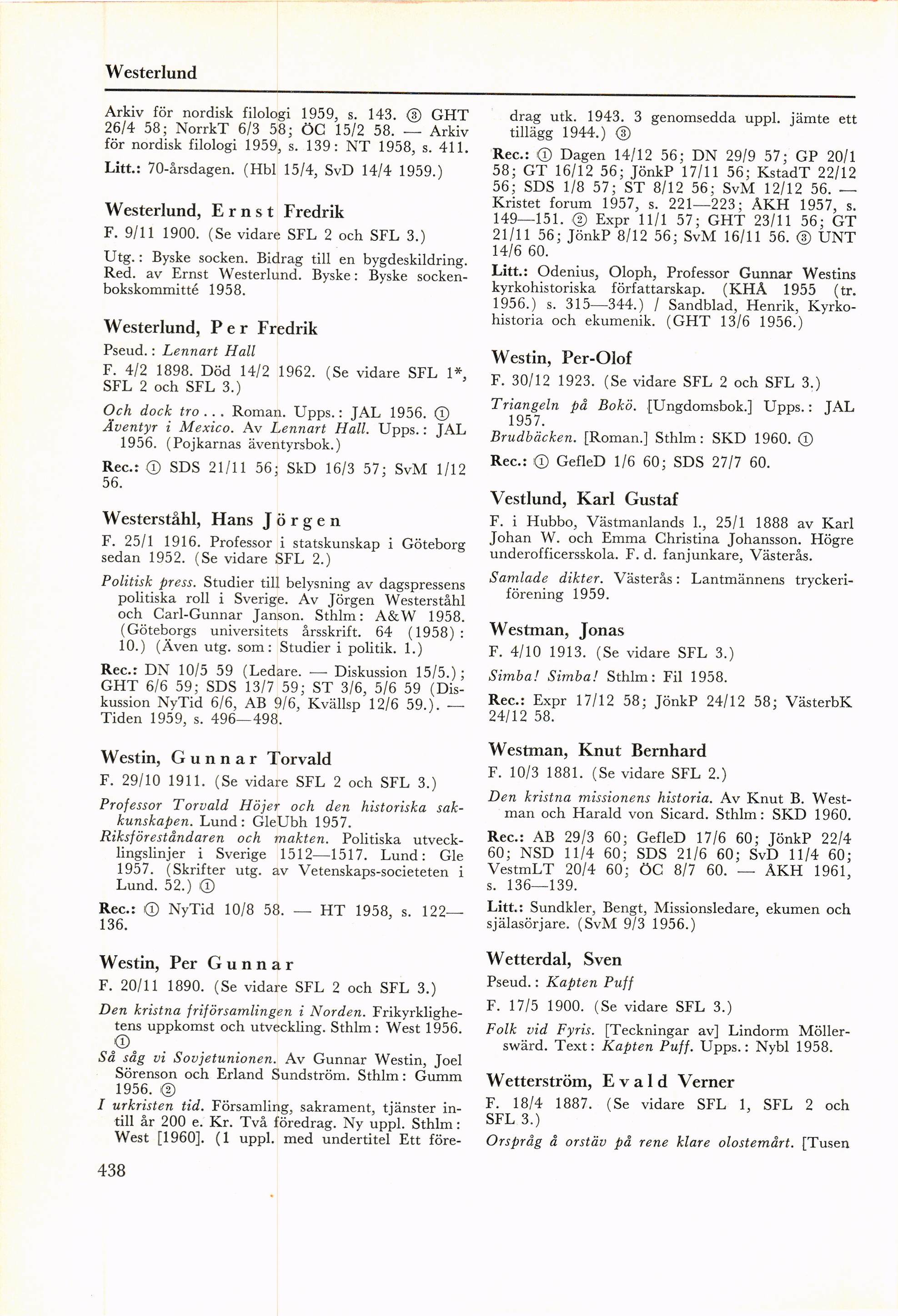 Westman och Harald von Sicard. Sthlm: SKD 1960.