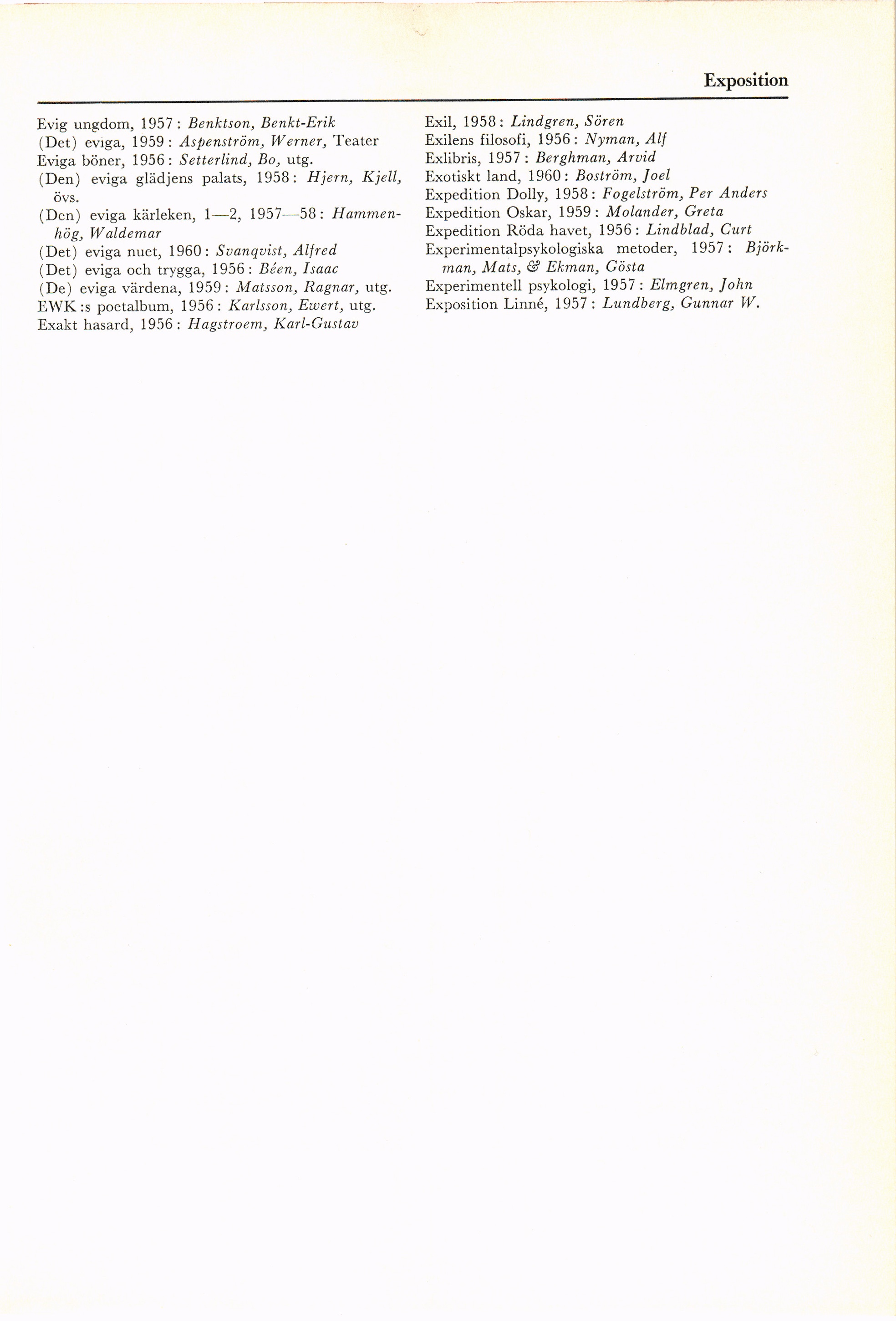 (De) eviga värdena, 1959: Matsson, Ragnar, utg.