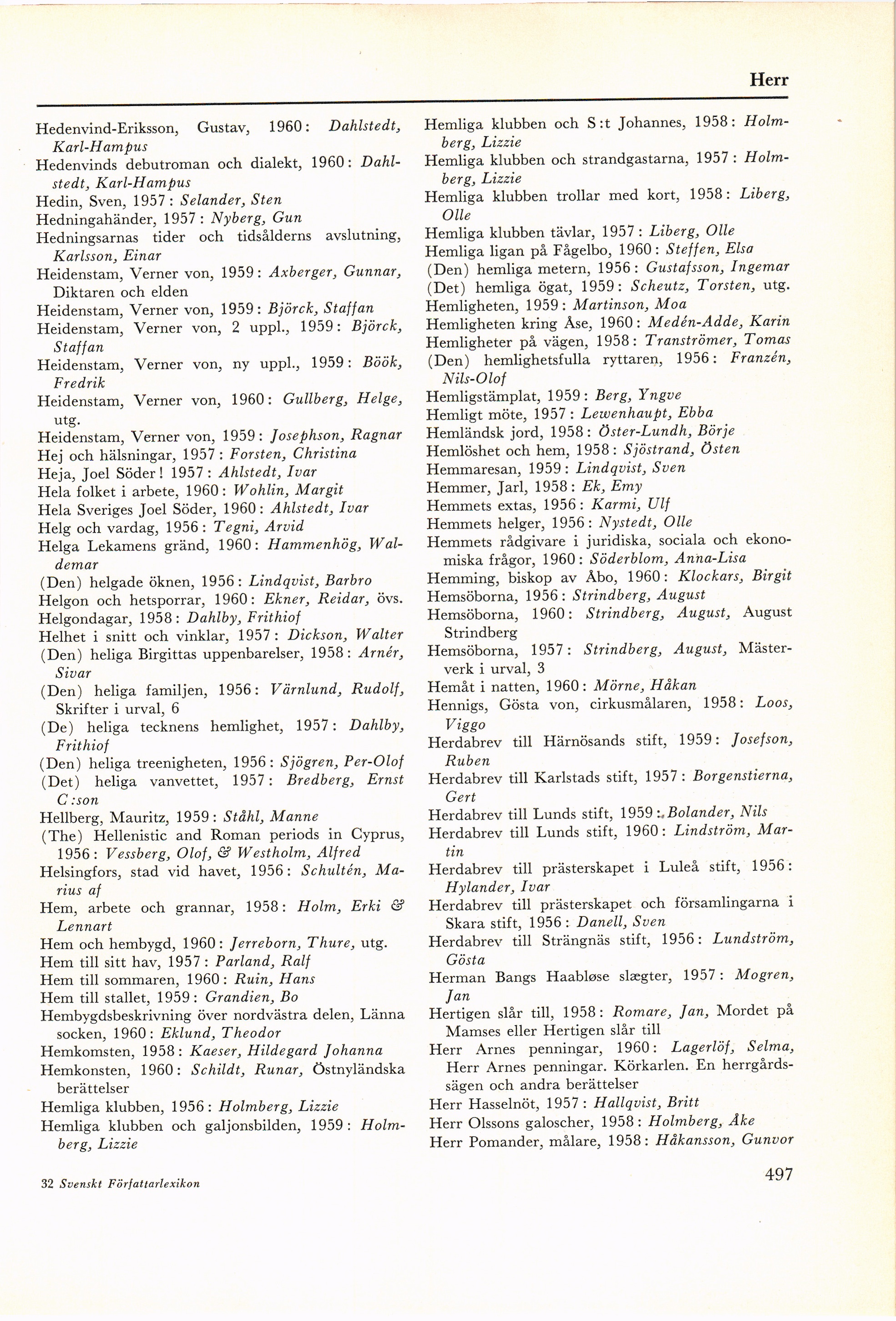 Heidenstam, Verner von, 2 uppl., 1959: Björck,