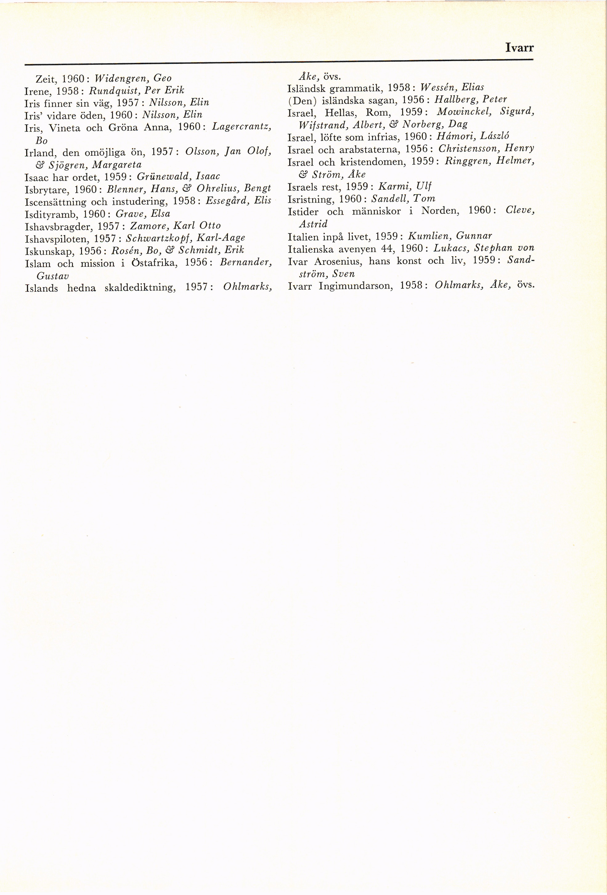 Ivarr Ingimundarson, 1958: Ohlmarks, Åke, övs.