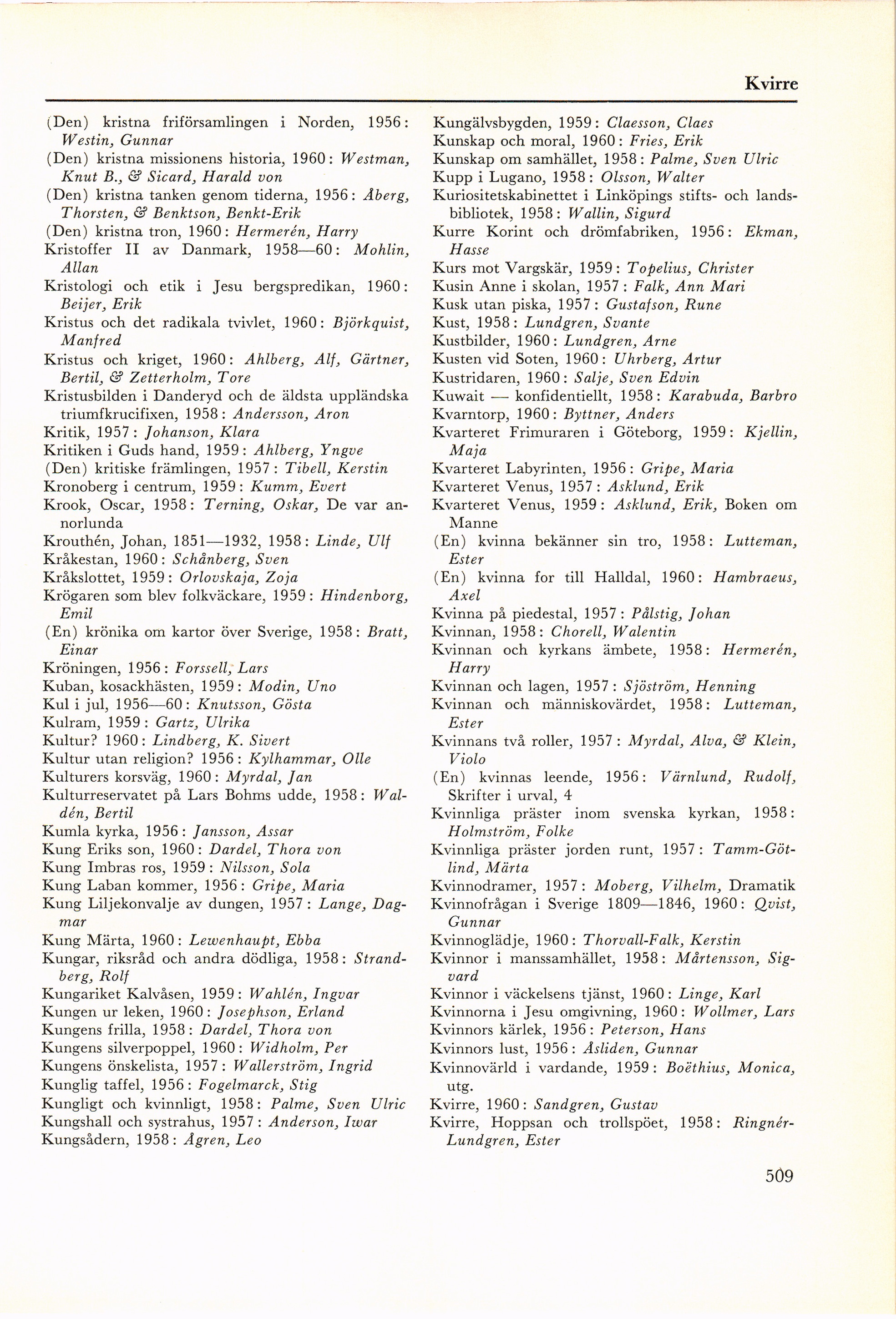 (Den) kritiske främlingen, 1957 : Tibell, Kerstin