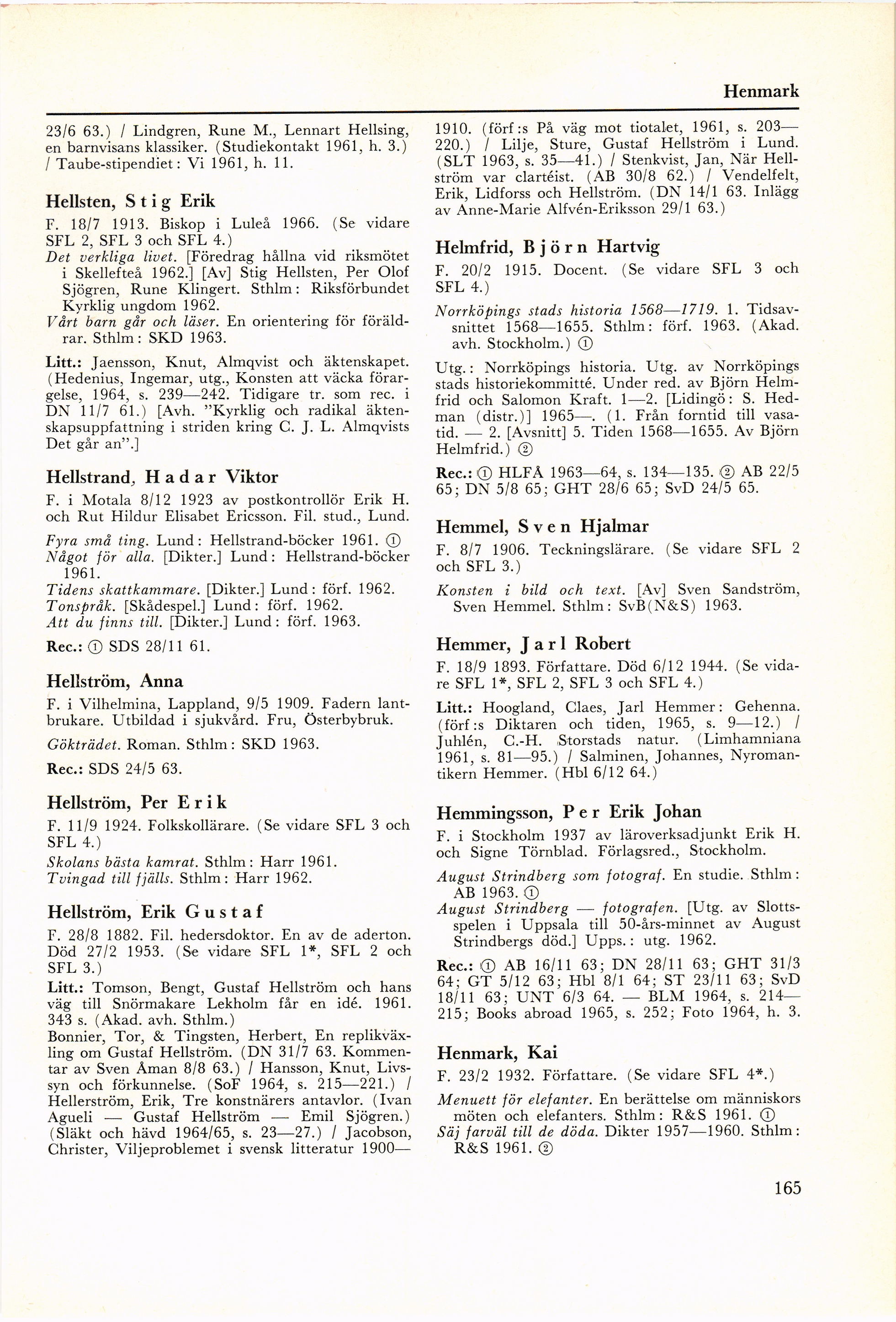 Sven Hemmel. Sthlm: SvB(N&S) 1963.