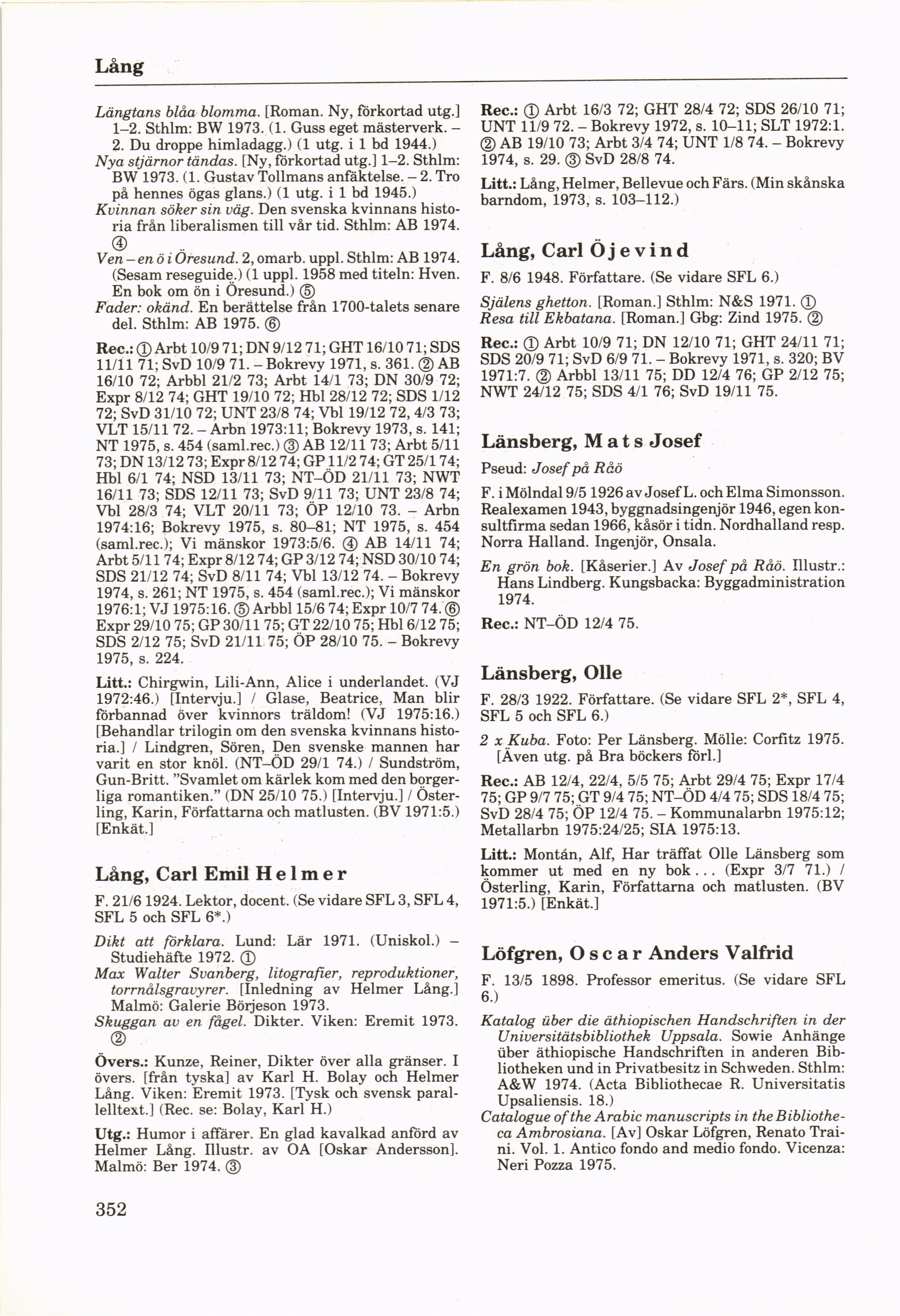 SDS 2/12 75; SvD 21/11 75; ÖP 28/10 75. - Bokrevy