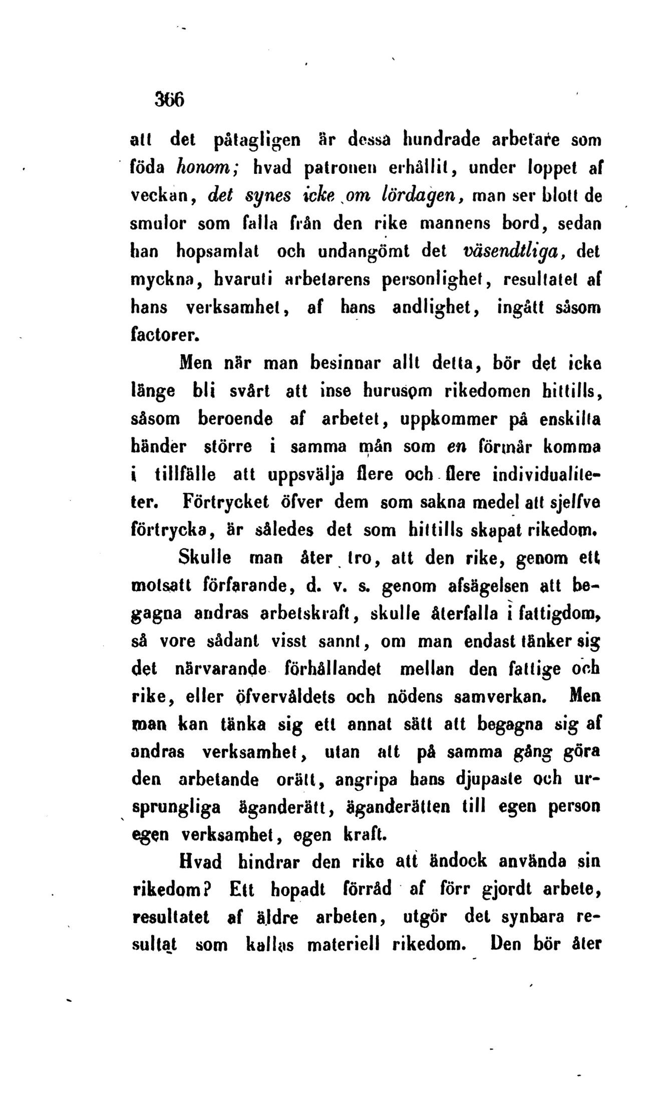 individualiteter. Förtrycket öfver dem som sakna medel att sjelfve