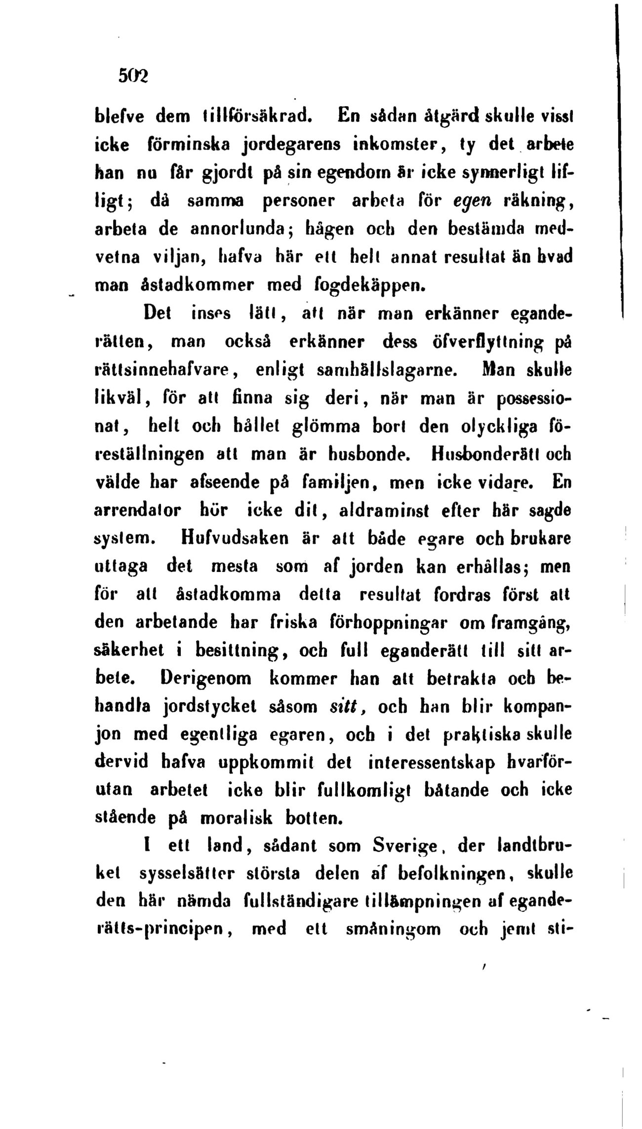 icke förminska jordegarens inkomster, ty det arbete