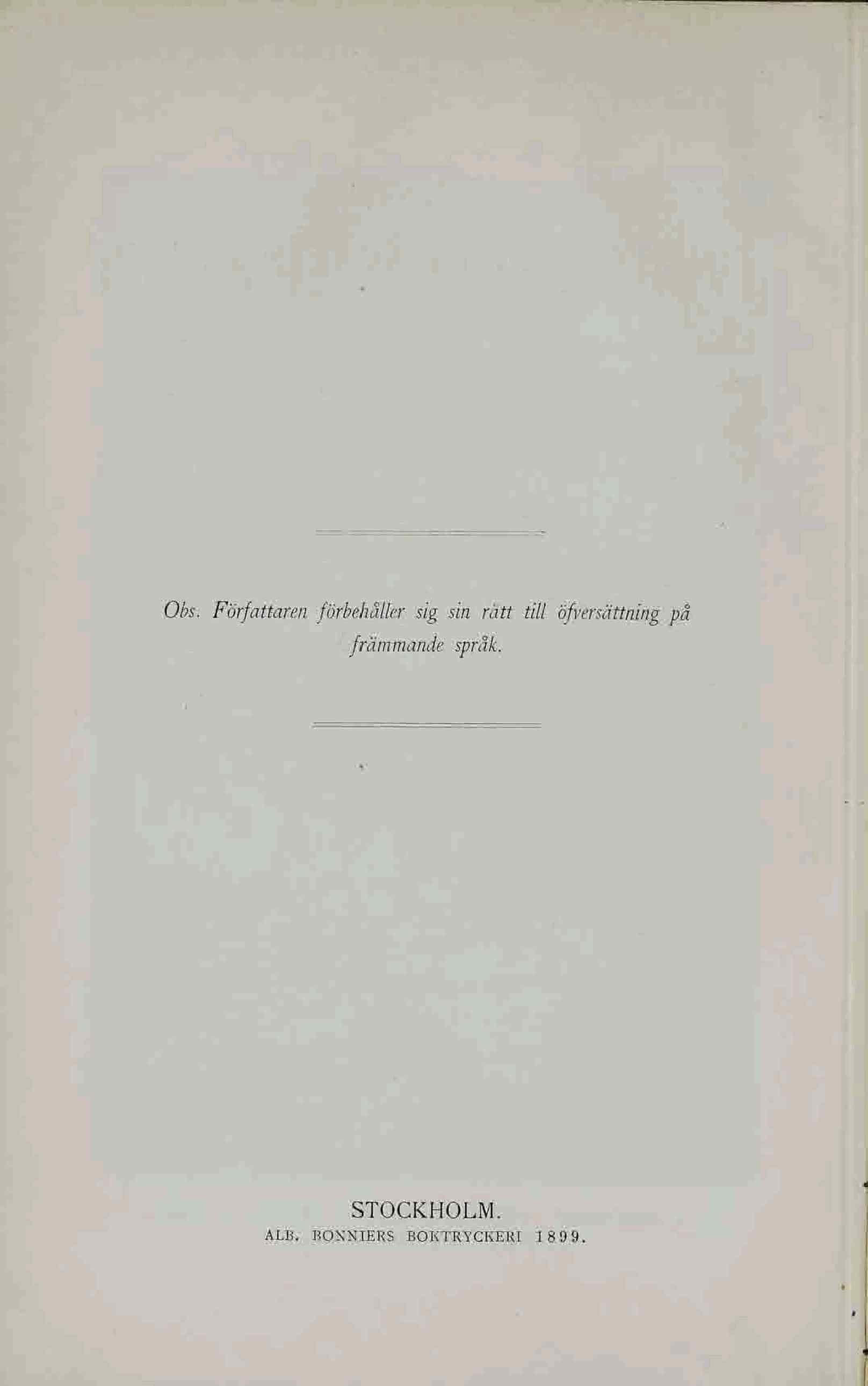 Obs. Författaren förbehåller sig sin rått tll öfversättning på