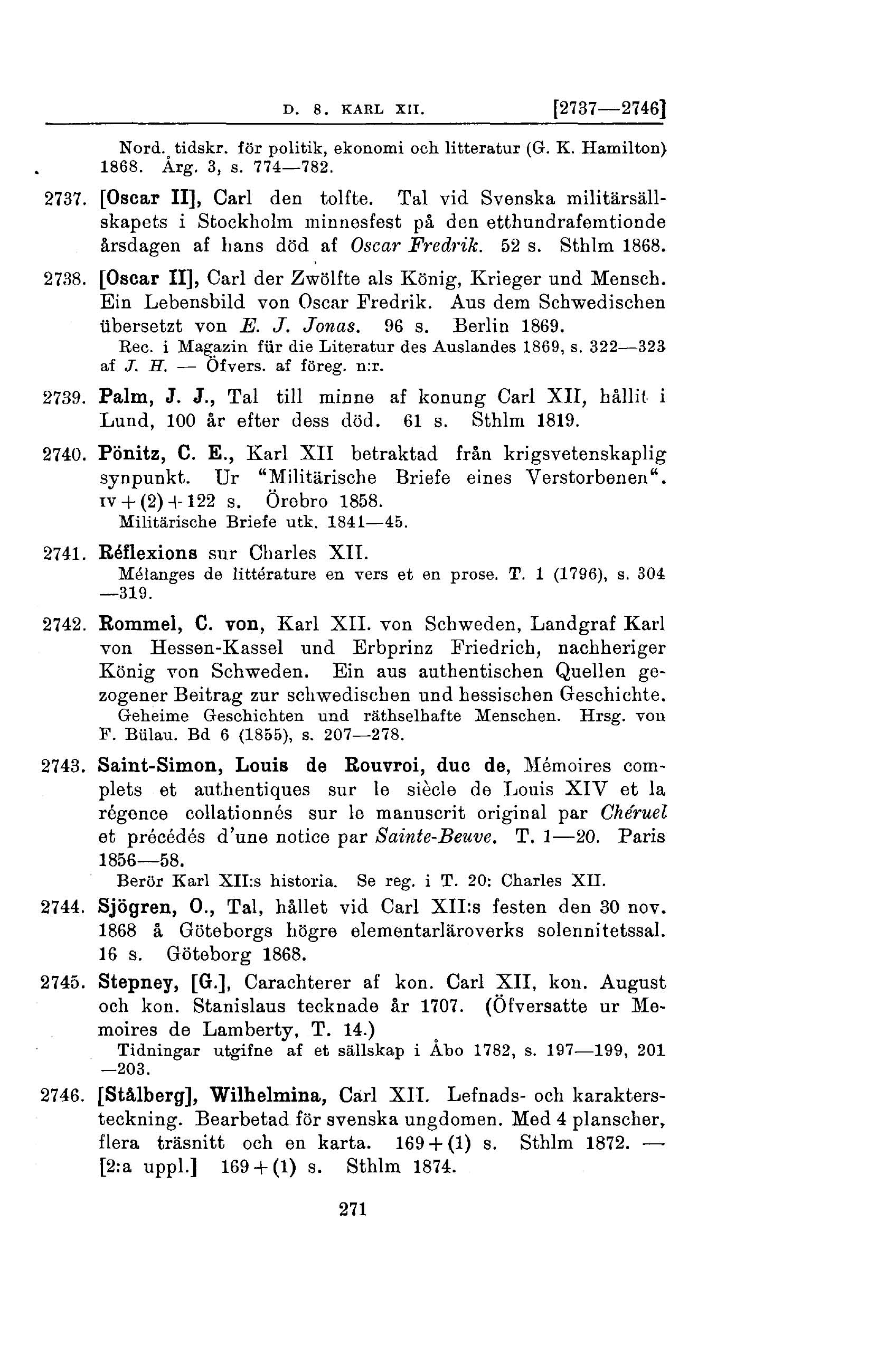 2740. Pönitz, C. E., Karl XII betraktad från krigsvetenskaplig