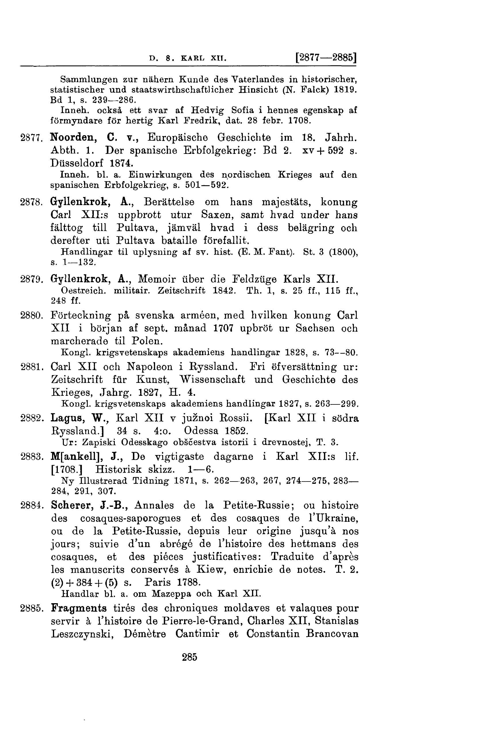 2879. Gyllenkrok, A., Memoir über die Feldzüge Karls XII.