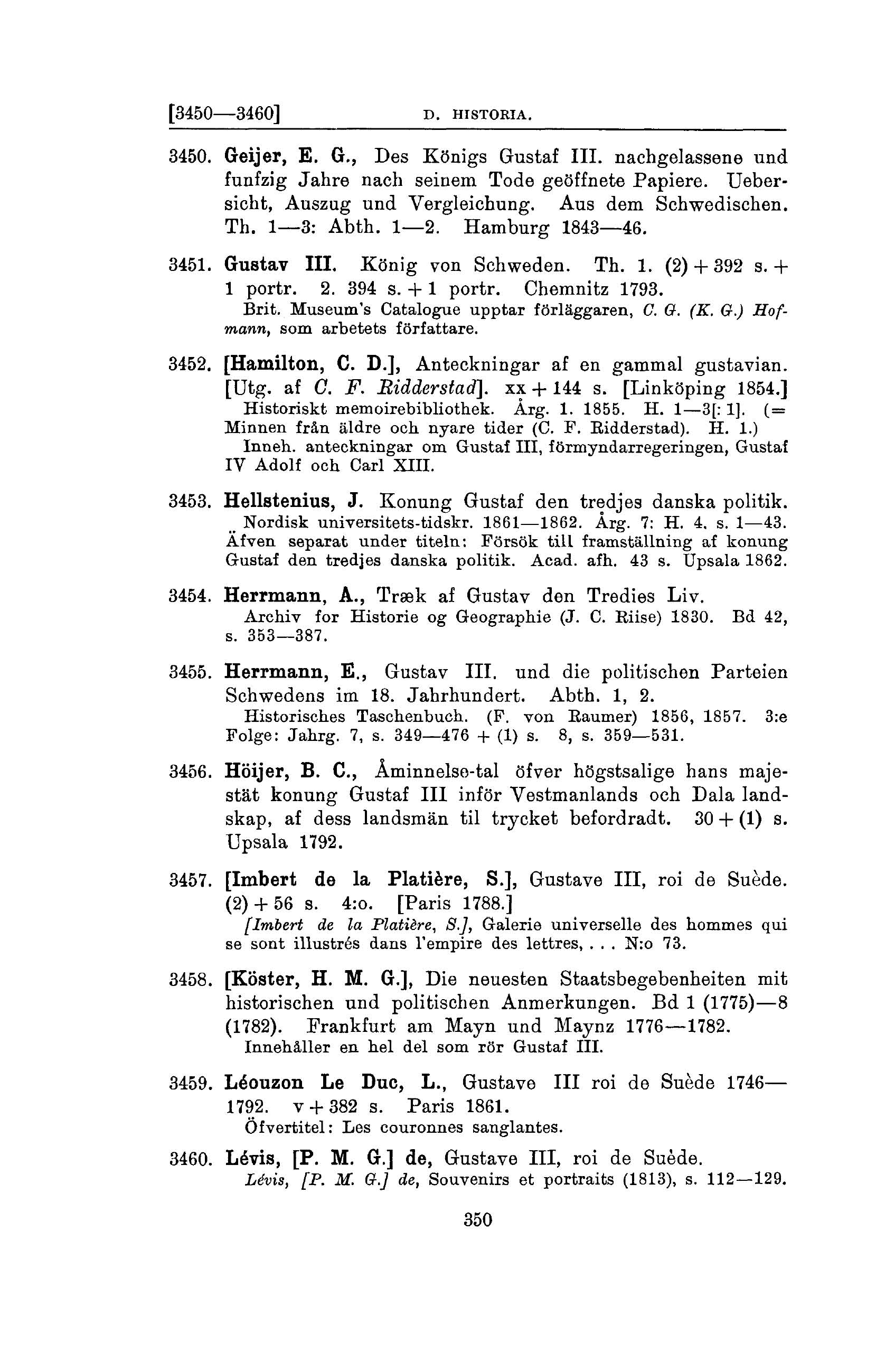 3450. Geijer, E. G., Des Königs Gustaf III. nachgelassene und