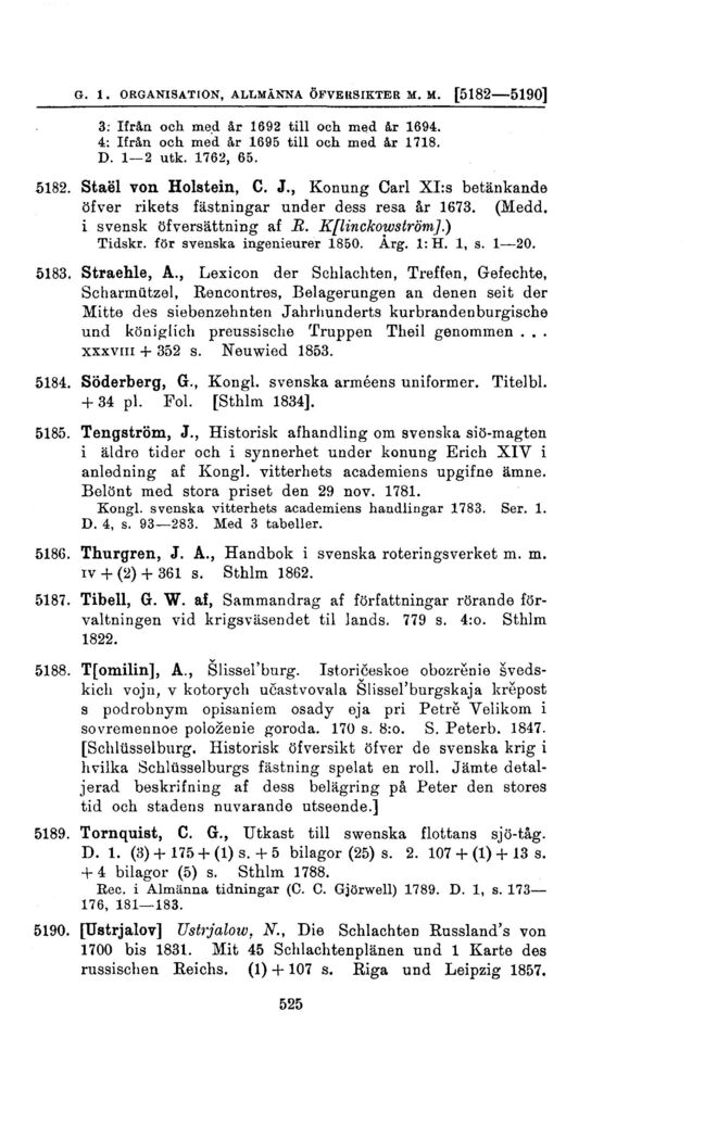 g. 1. organisation, allmänna öfversikter m. m. [5151 — 5157]