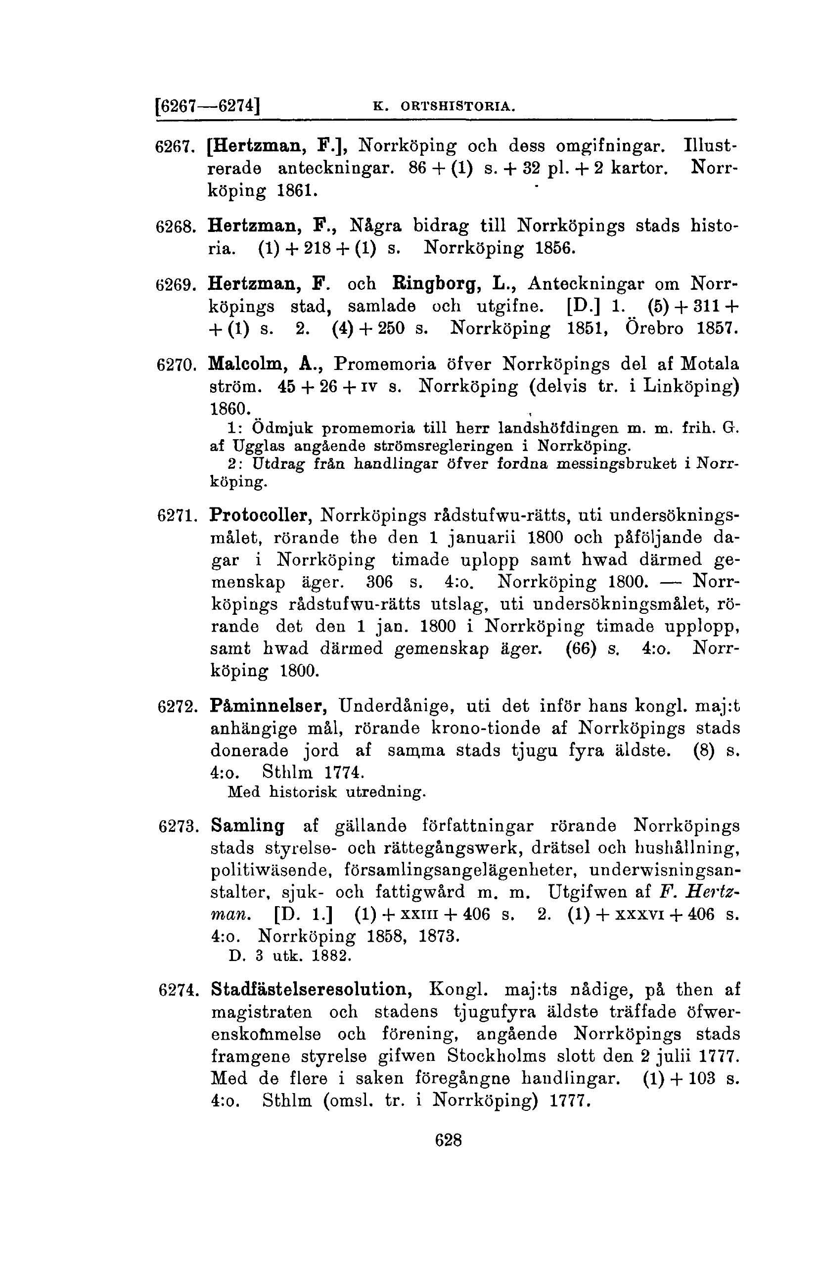 6268. Hertzman, F., Några bidrag till Norrköpings stads