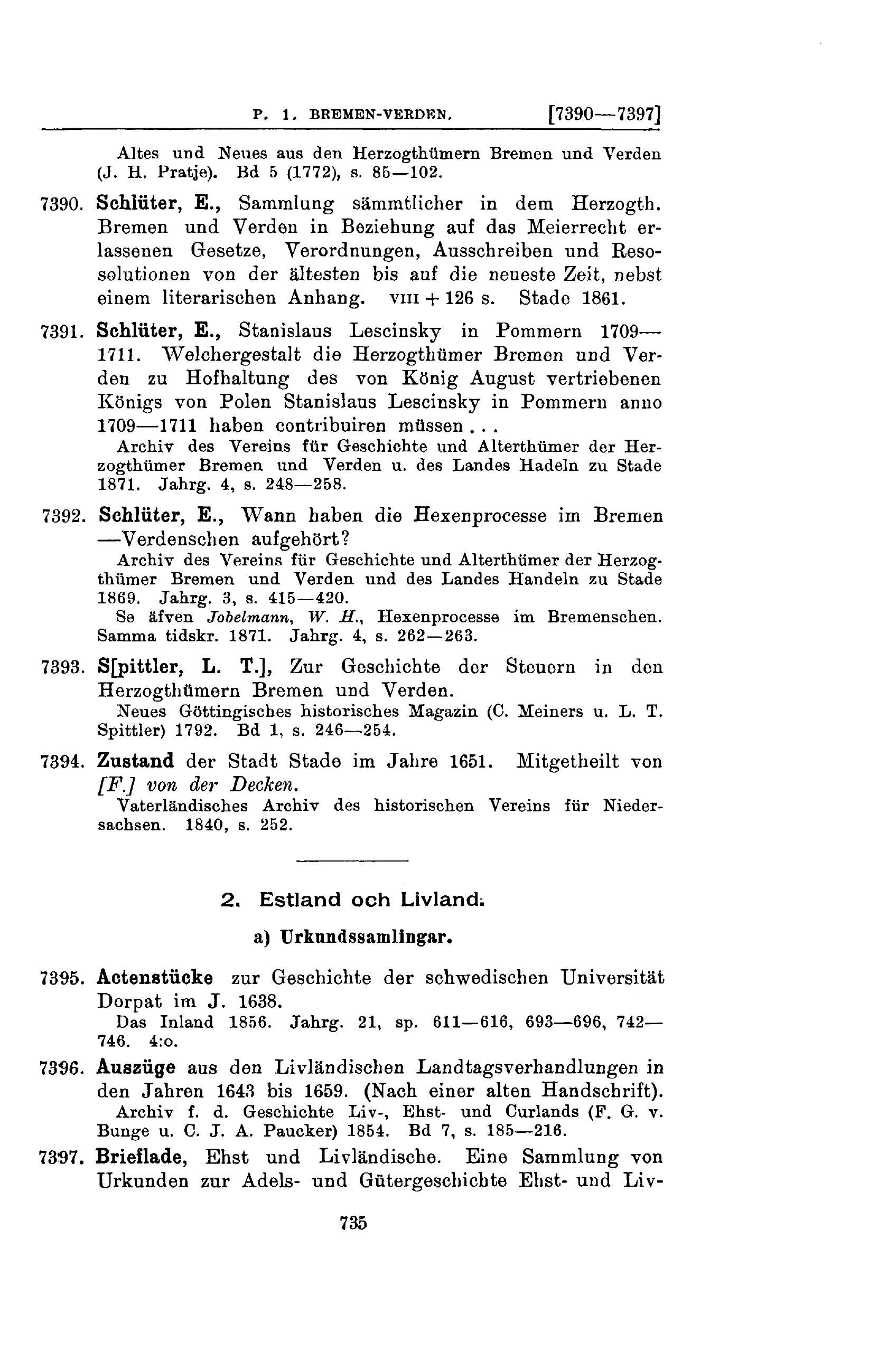 7392. Schlüter, E., Wann haben die Hexenprocesse im Bremen