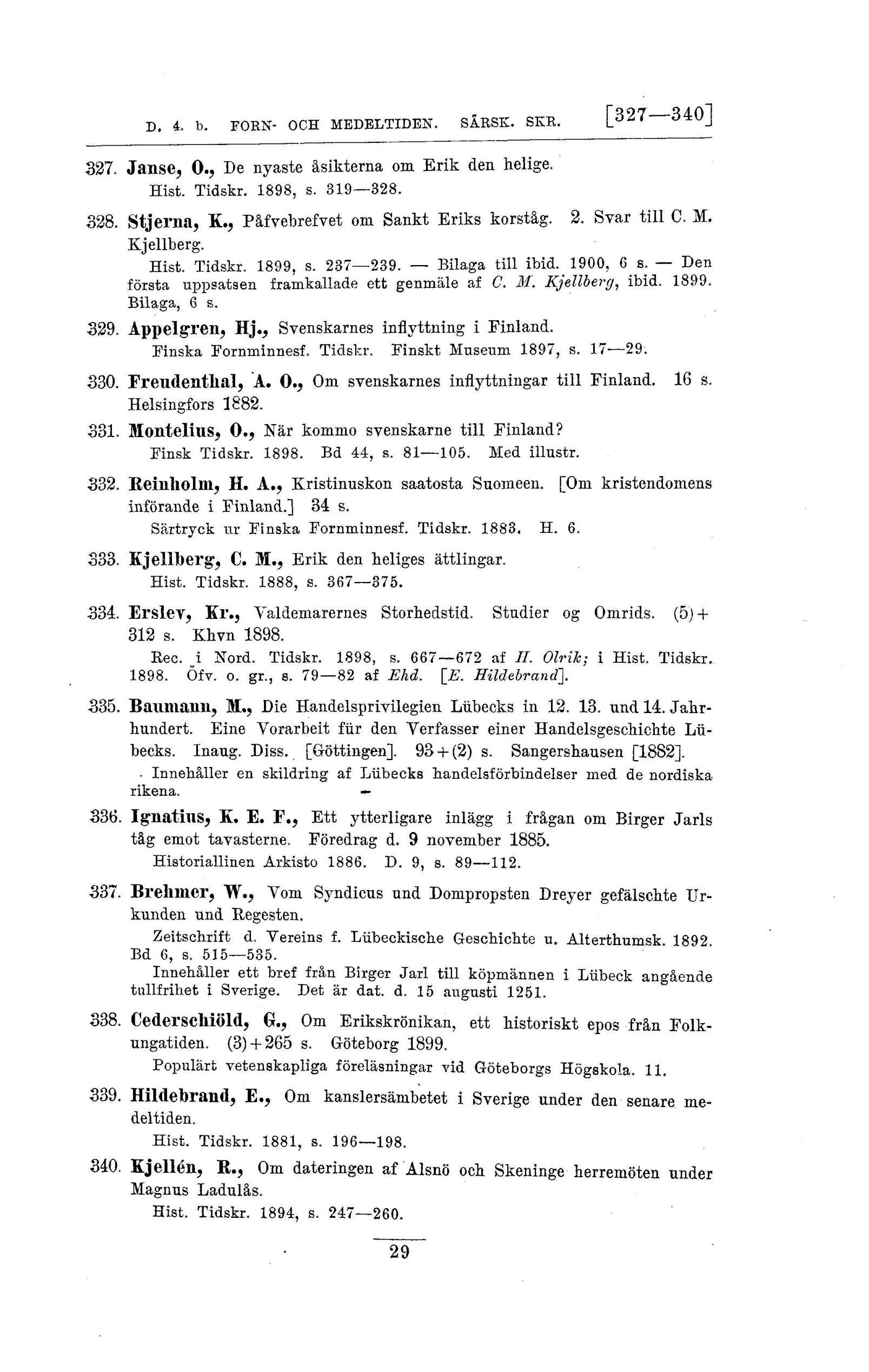 327. Janse, 0., De nyaste åsikterna om Erik den helige.