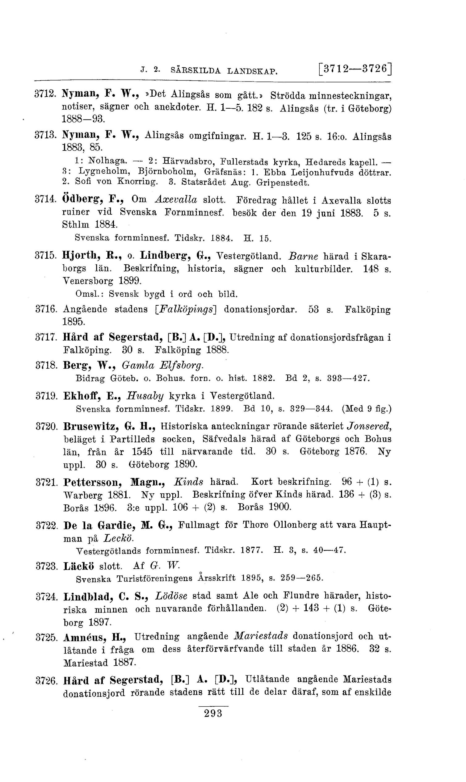 3713. Nyman, F. W., Alingsås omgifningar. H. 1—3. 125 s. 16:o. Alingsås