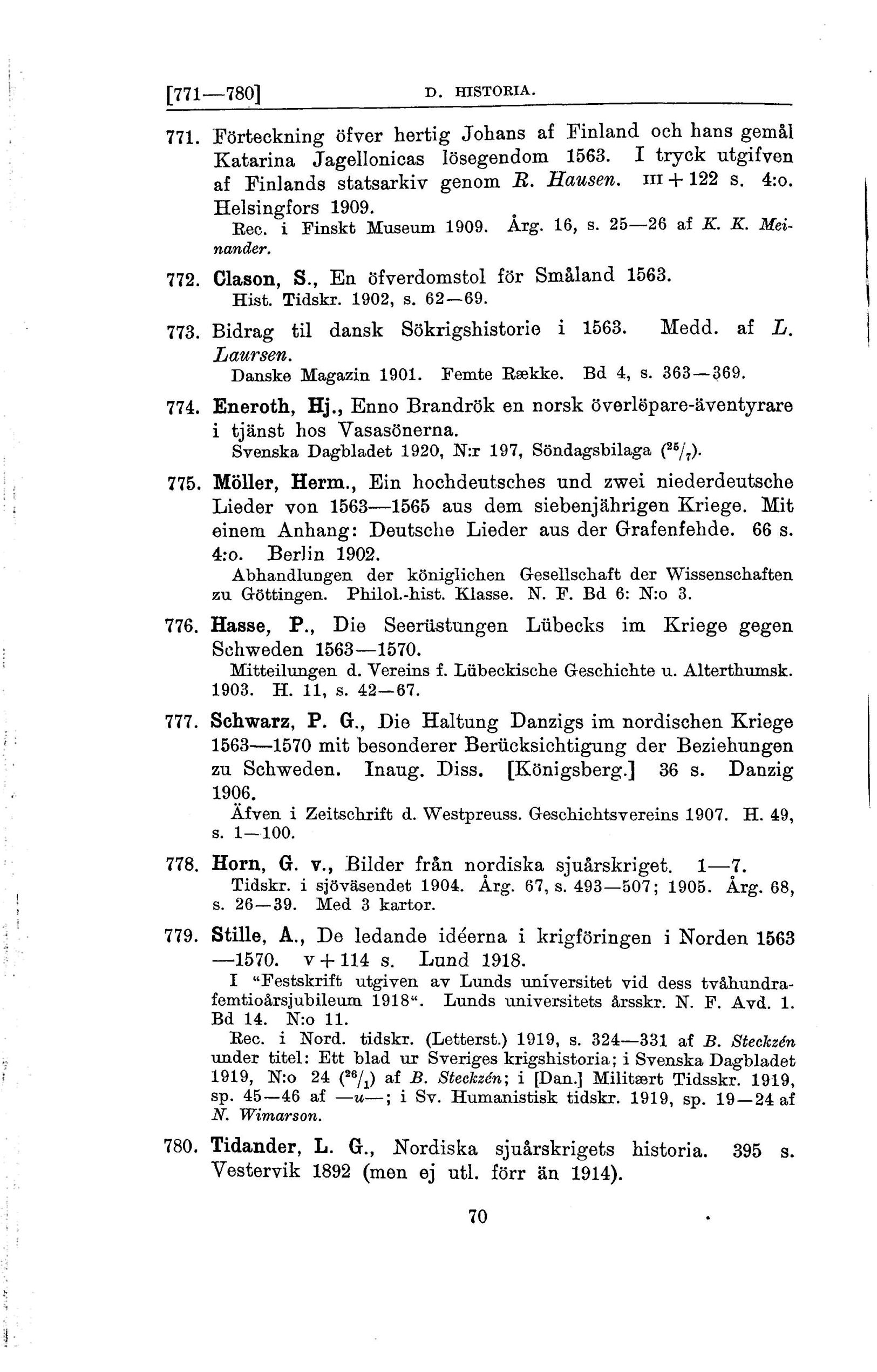 780. Tidander, L. G., Nordiska sjuårskrigets historia. 395 s.