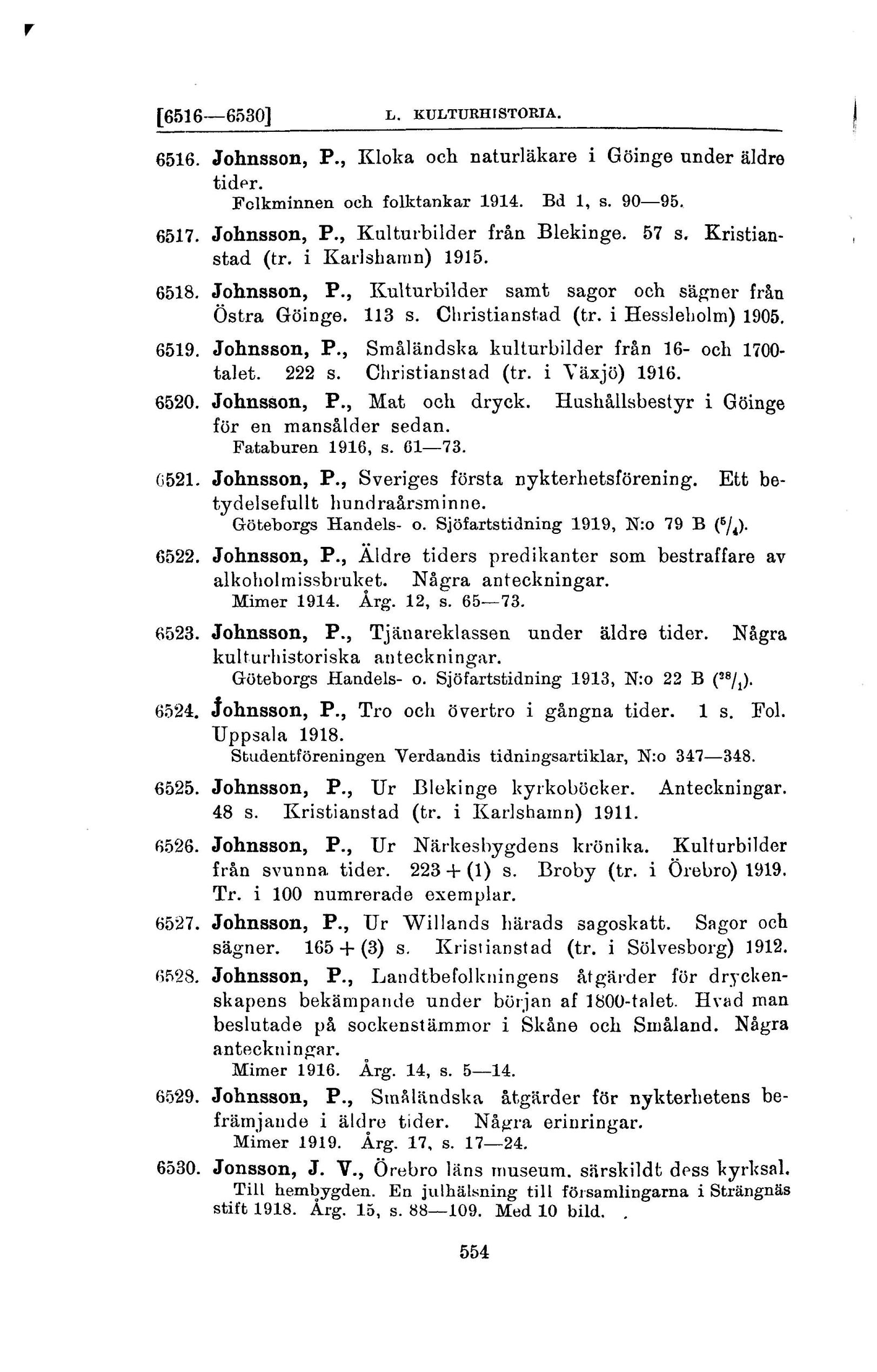 6518. Johnsson, P., Kulturbilder samt sagor och sägner från