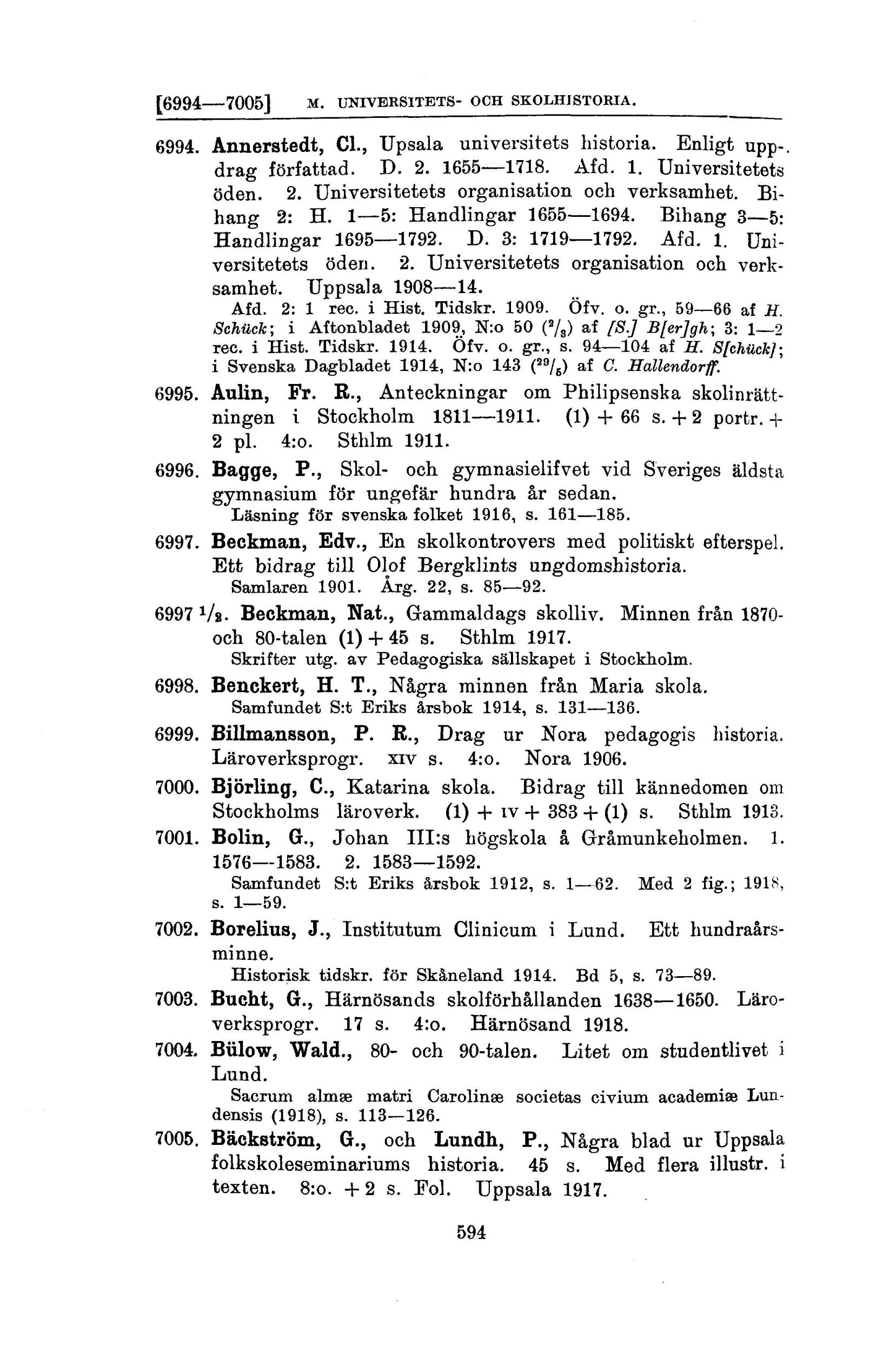 6994. Annerstedt, Cl., Upsala universitets historia. Enligt upp-,