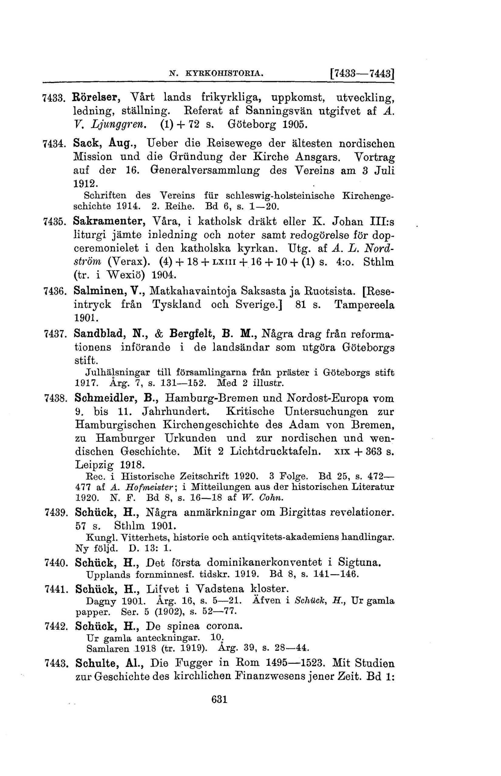 7440. Schück, H., Det första dominikanerkonventet i Sigtuna.
