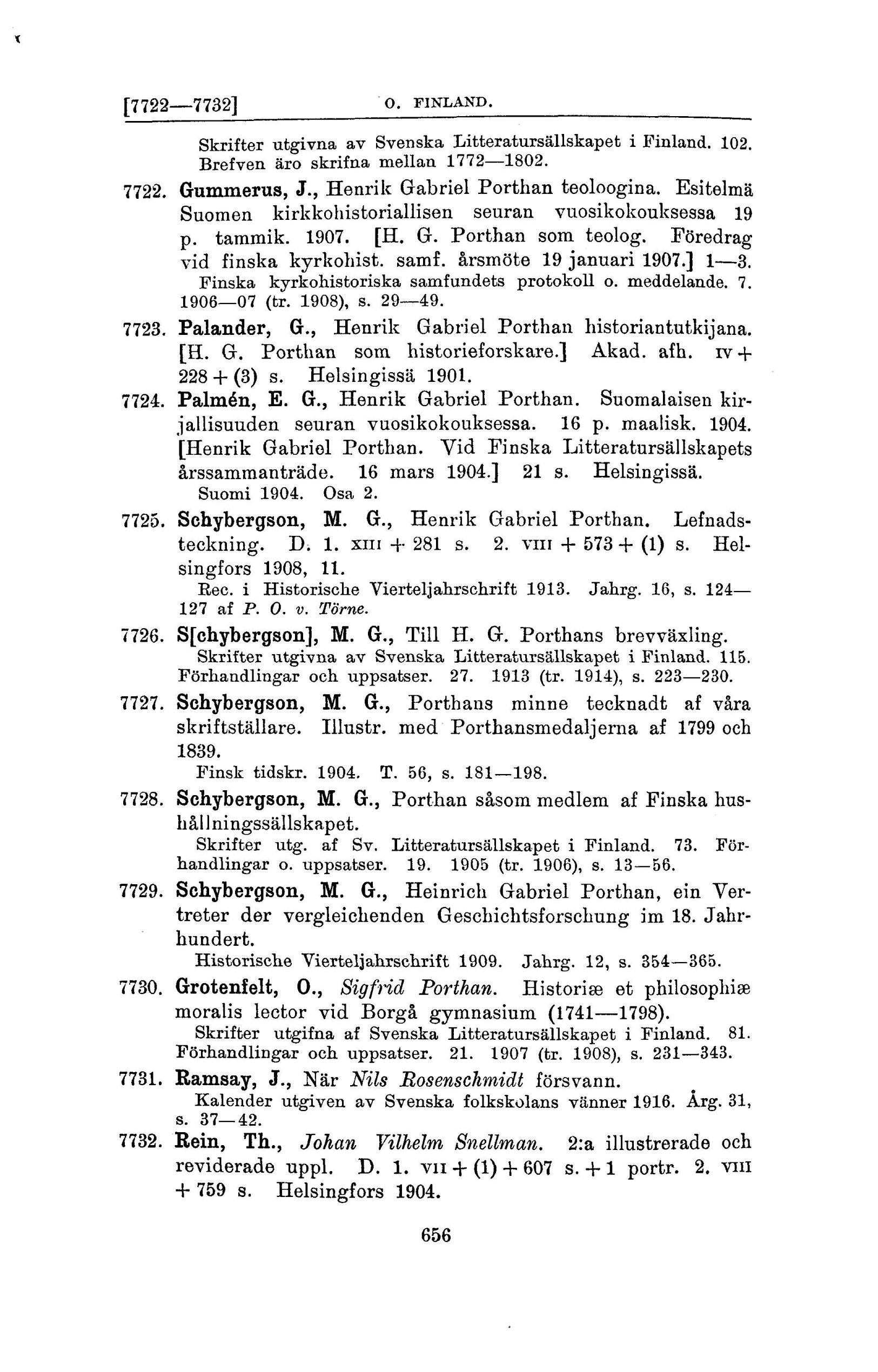 7725. Schybergson, M. G., Henrik Gabriel Porthan.