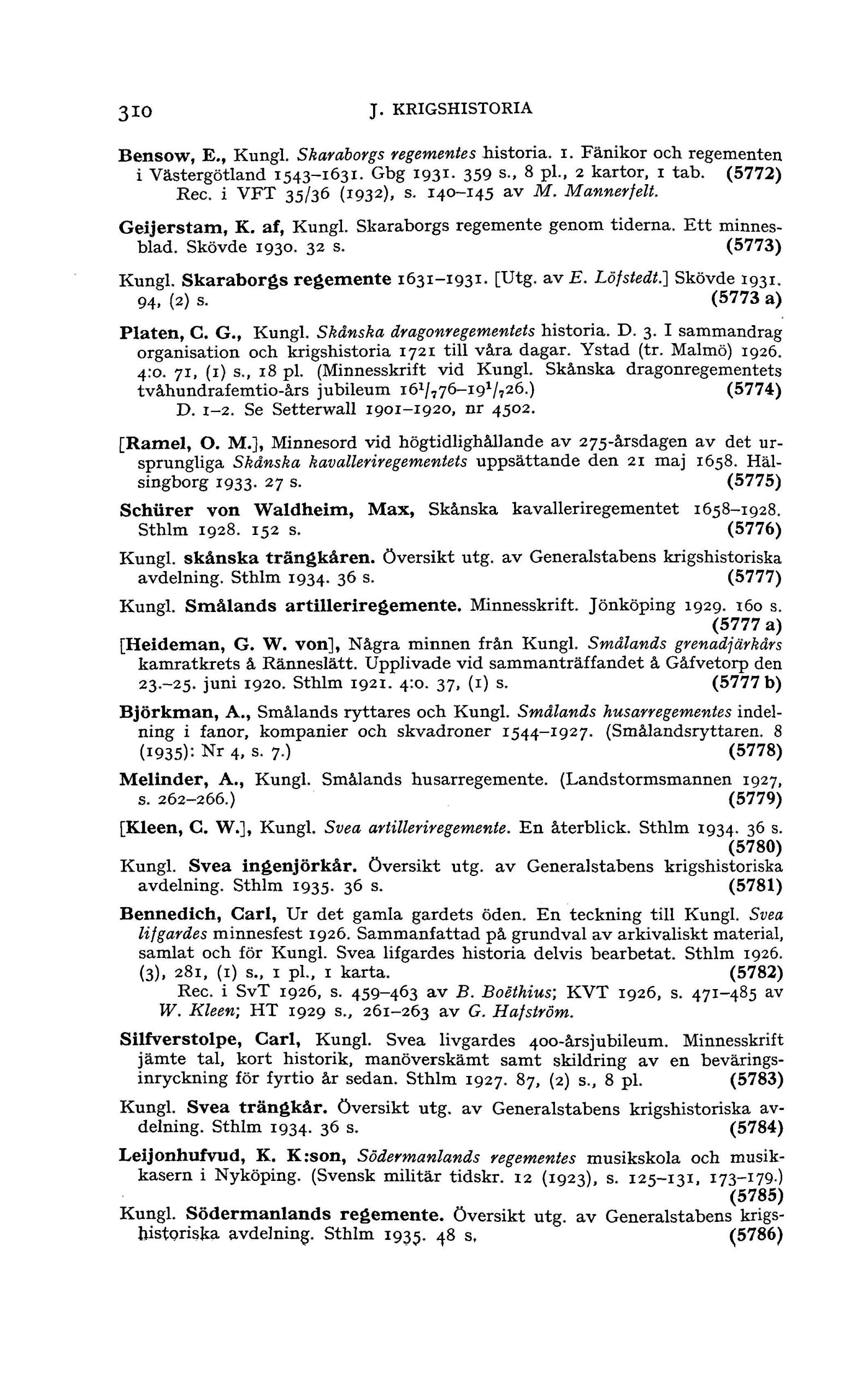 krigshistoriska avdelning. Sthlm 1935. 4® s’ (5786)