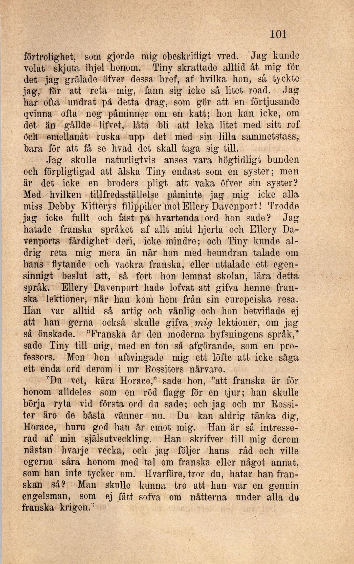 ”Du vet, kära Horace," sade hon, ”att franska är för