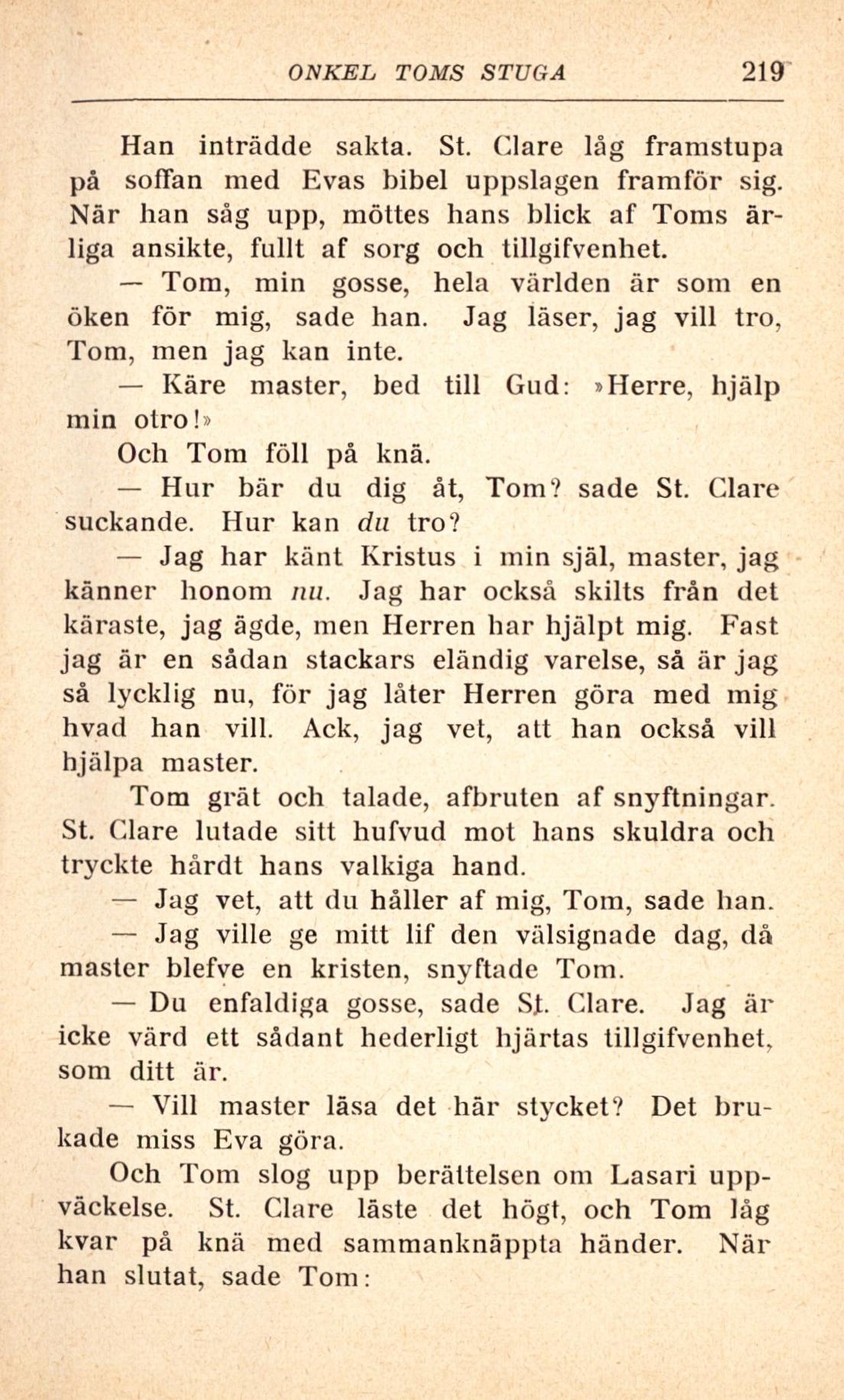 uppväckelse. St. Clare läste det högt, och Tom låg