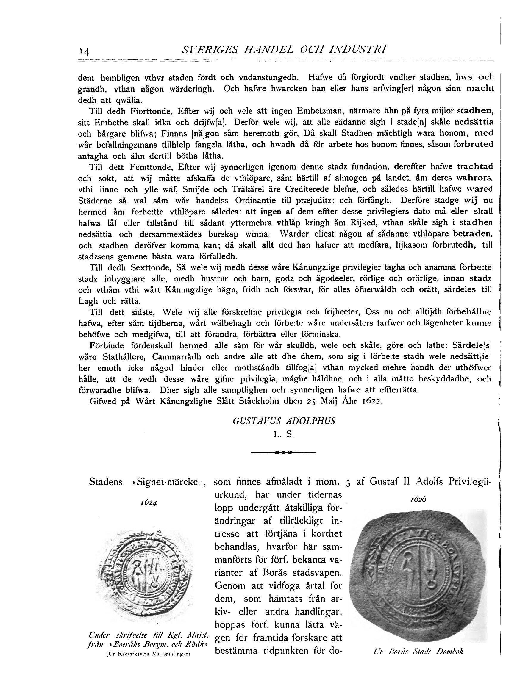 Gifwed på Wårt Kånungzlighe Slått Ståckholm dhen 25 Maij Åhr 1622.