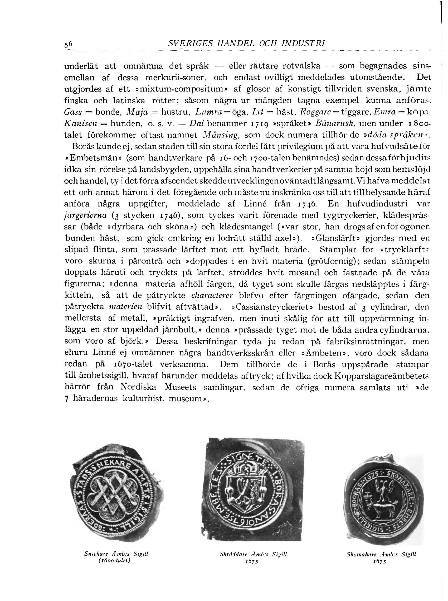 ehuru Linné ej omnämner några handtverksskrån eller »Ämbeten», voro dock sådana
