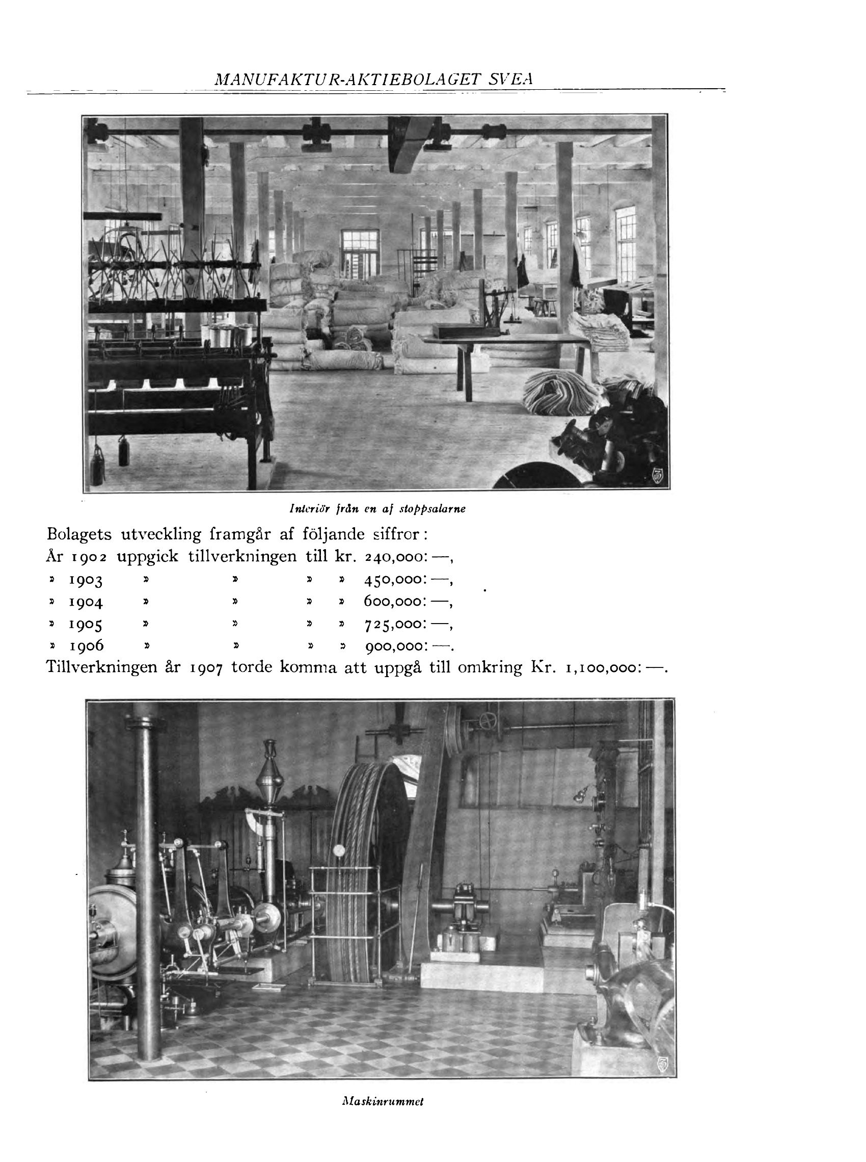 Tillverkningen år 1907 torde komma att uppgå till omkring Kr. 1,100,000:—.