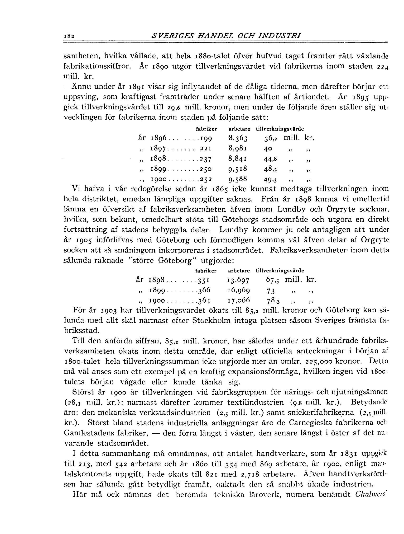 För år 1903 har tillverkningsvärdet ökats till 85,2 mill. kronor och Göteborg kan