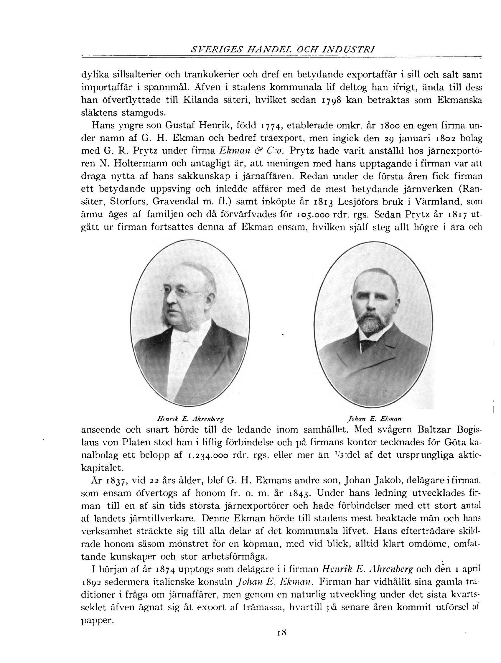 af landets järntillverkare. Denne Ekman hörde till stadens mest beaktade män och hans