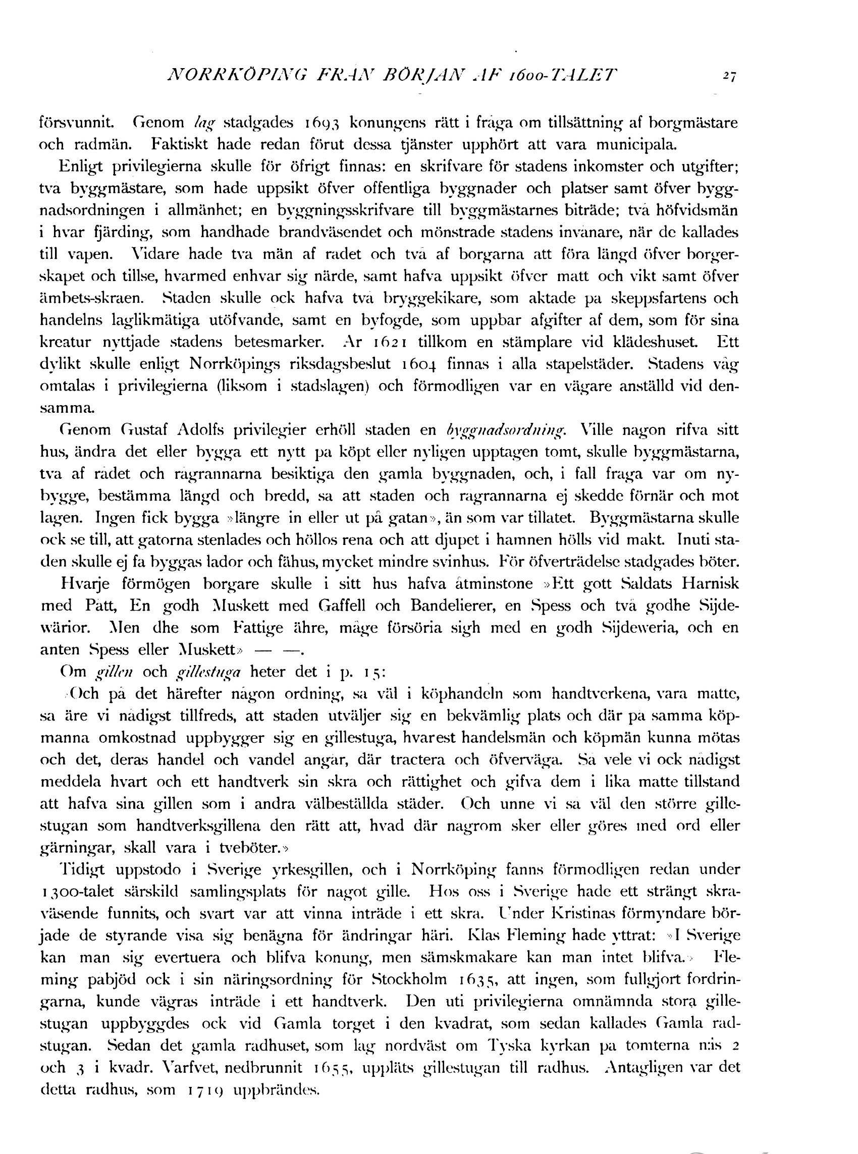 Genom Gustaf Adolfs privilegier erhöll staden en byggnadsordning. Ville någon rifva sitt