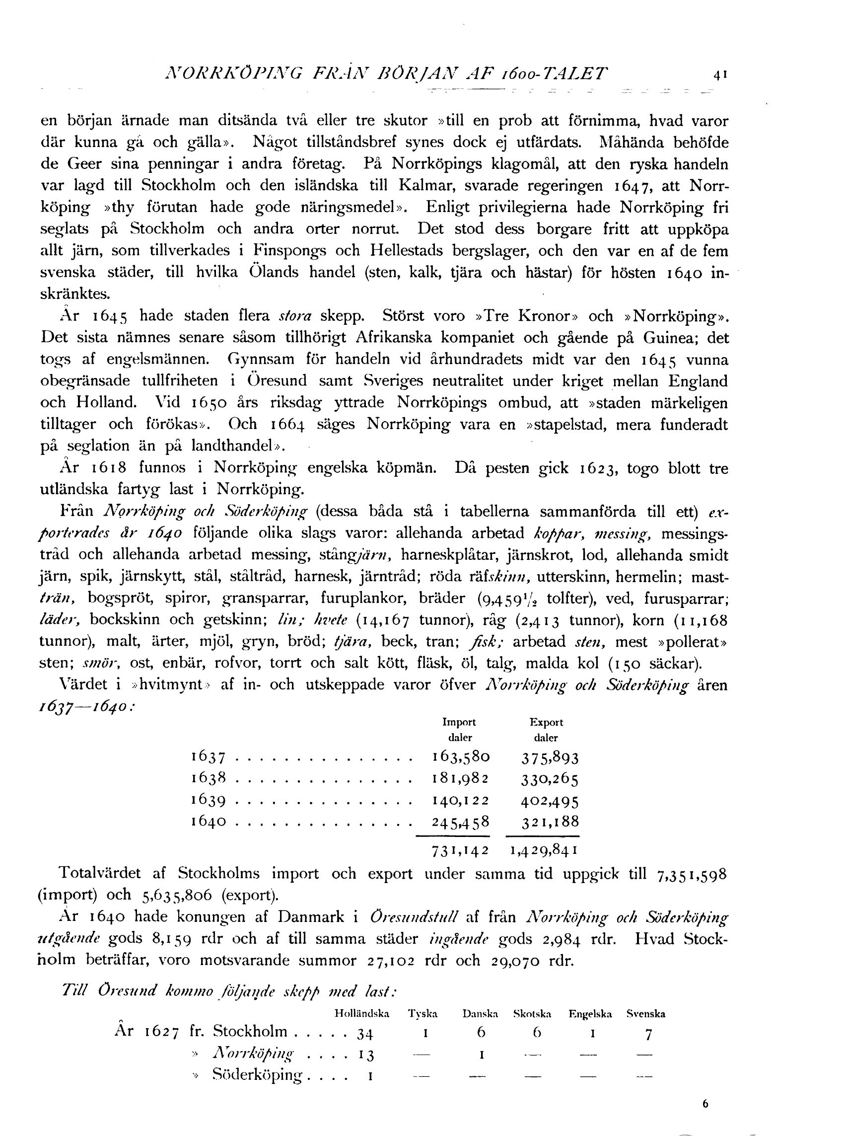 År 1640 hade konungen af Danmark i Öresundstull från Norrköping och Söderköping