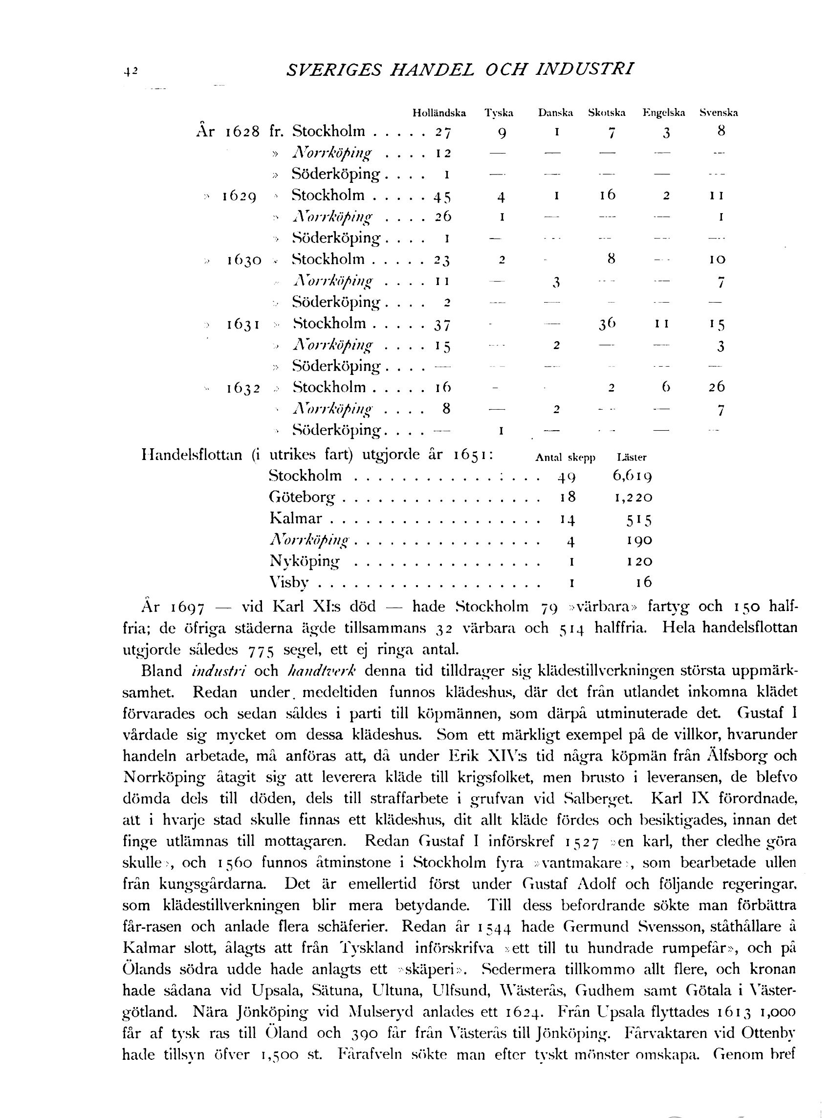Handelsflottan (i utrikes fart) utgjorde år 1651: Antal skepp Läster