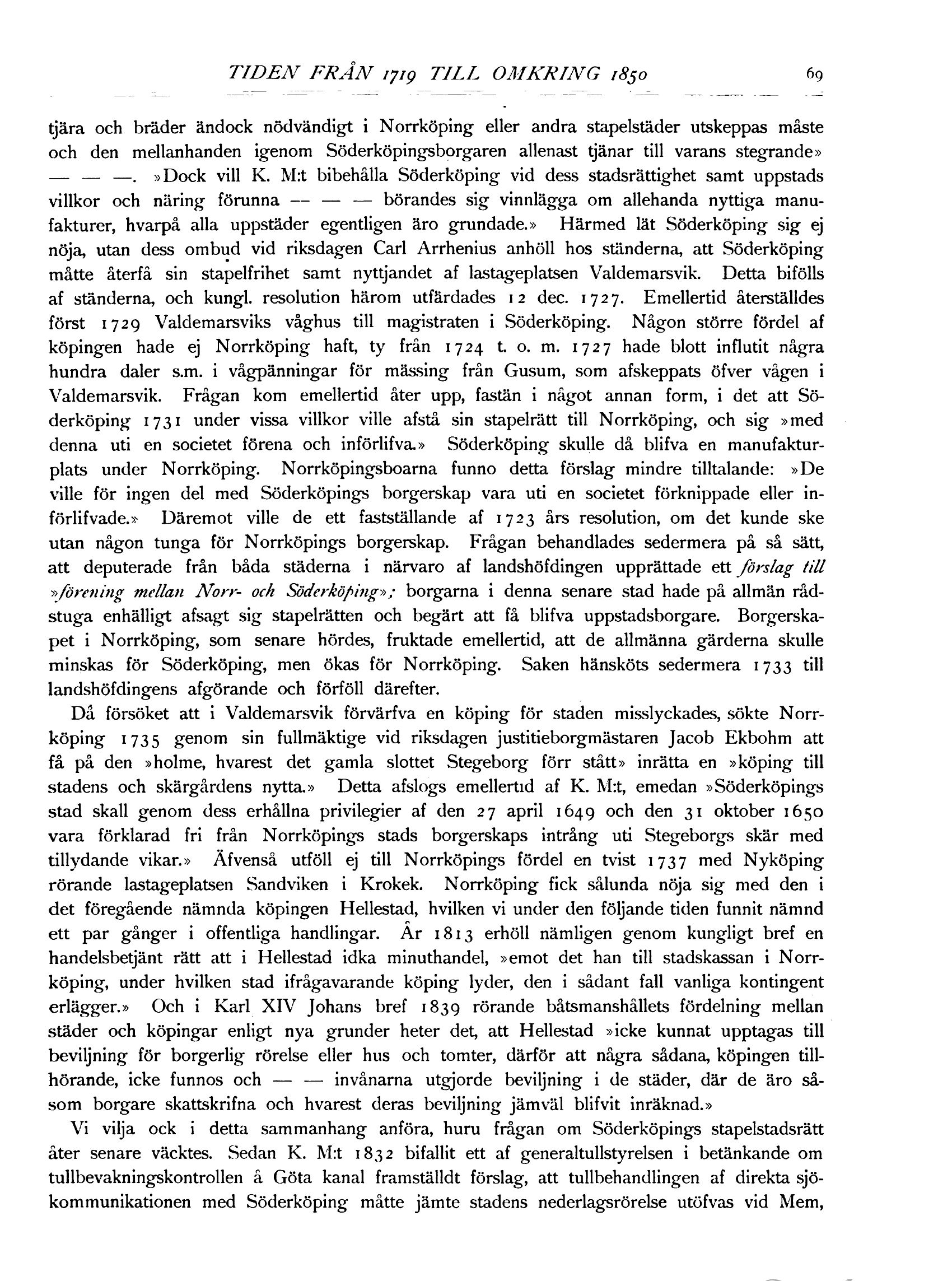 — — —. »Dock vill K. M:t bibehålla Söderköping vid dess stadsrättighet samt uppstads