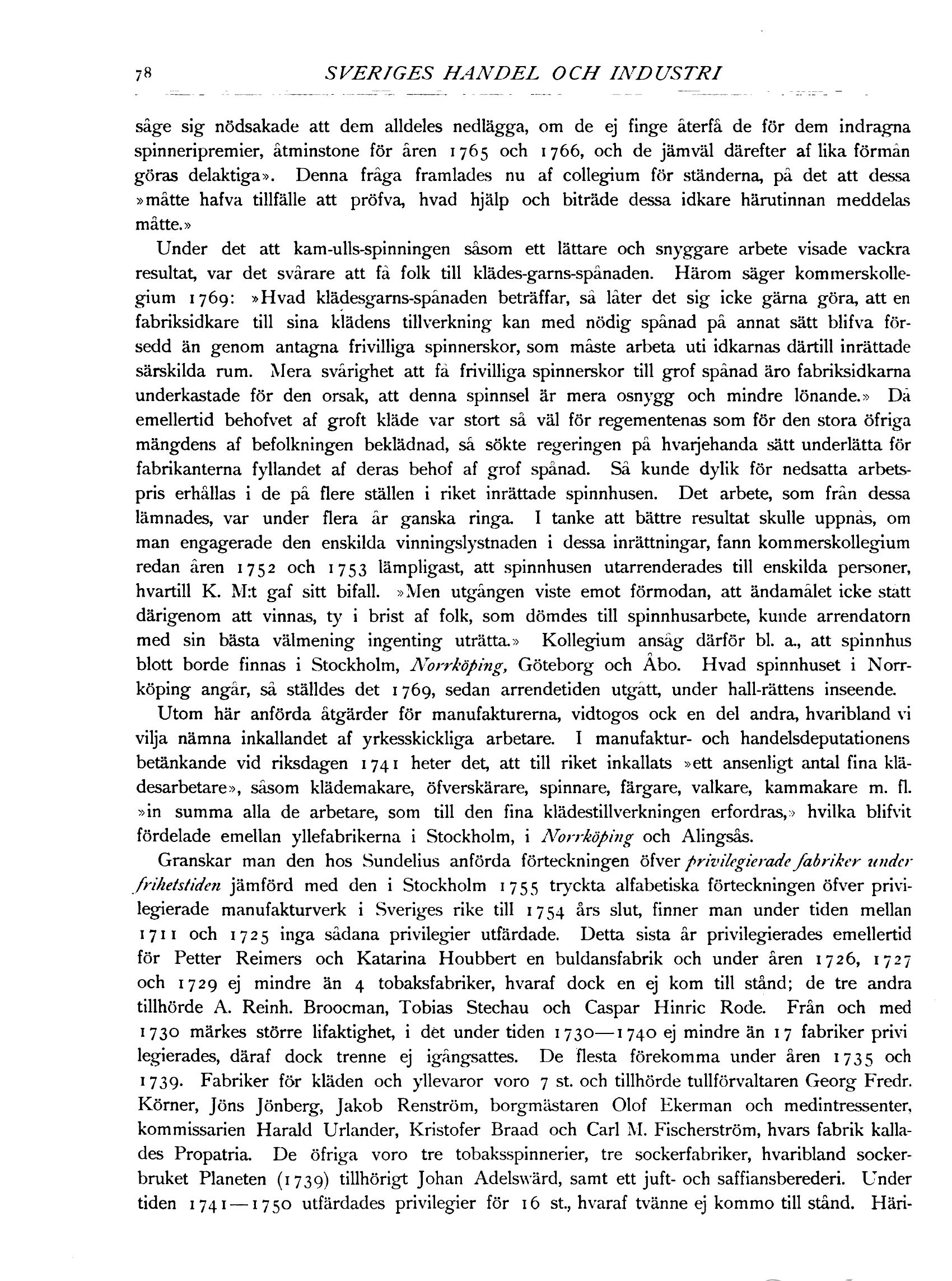 Granskar man den hos Sundelius anförda förteckningen öfver privilegierade fabriker