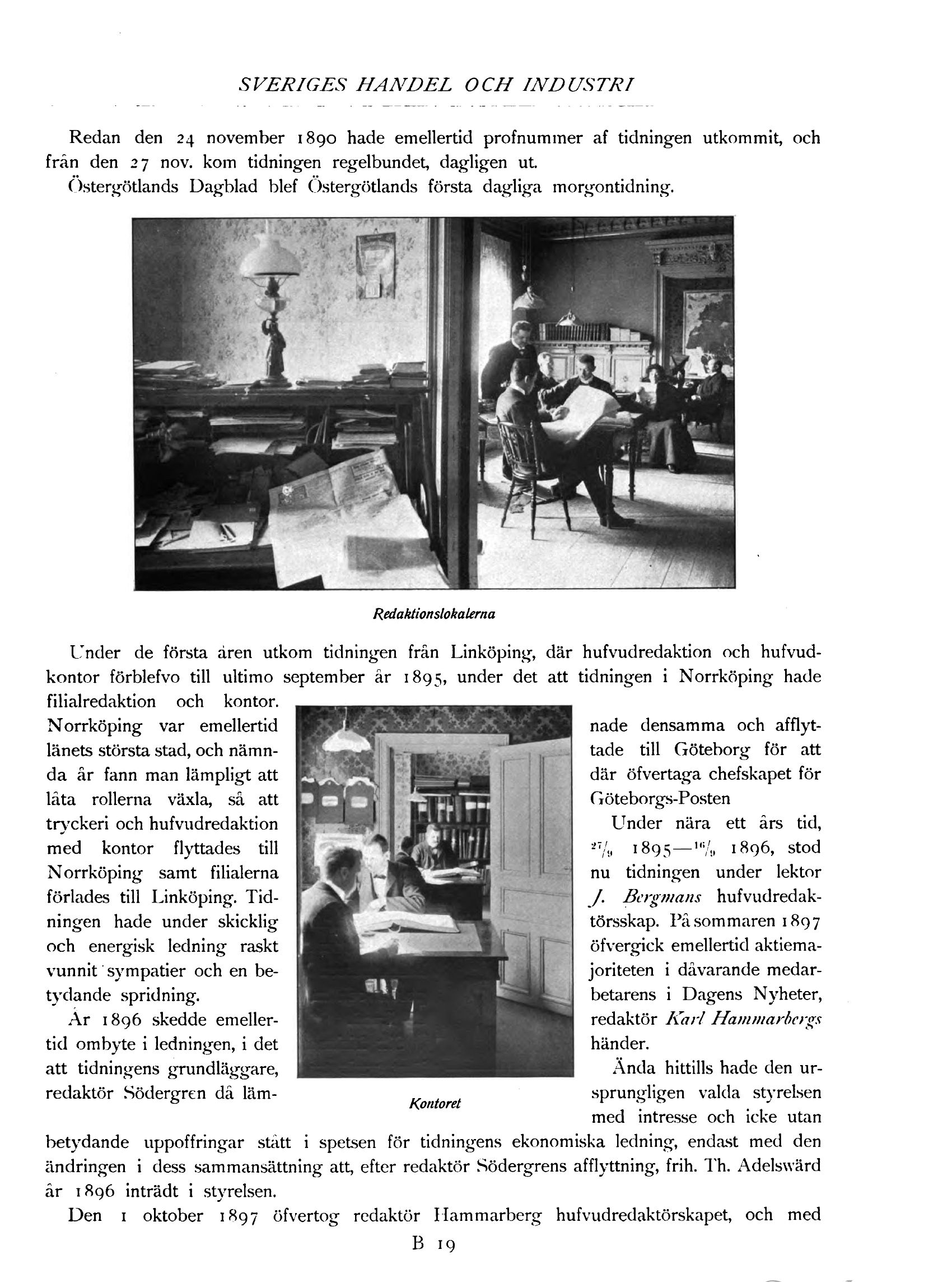 hufvud-kontor förblefvo till ultimo september år 1895, under det att tidningen i Norrköping hade