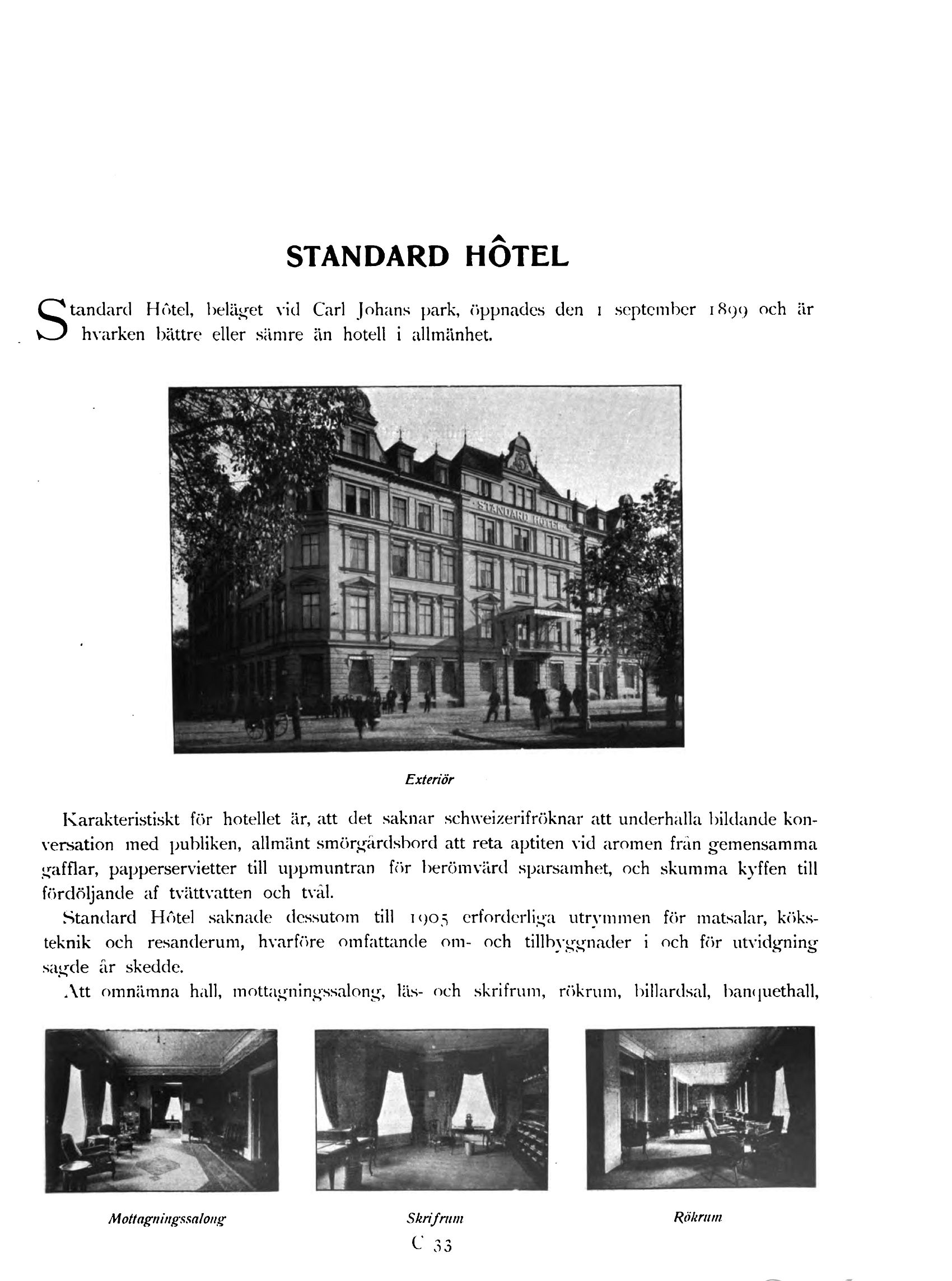 Standard Hotel, beläget vid Carl Johans park, öppnades den i september 1899 och är