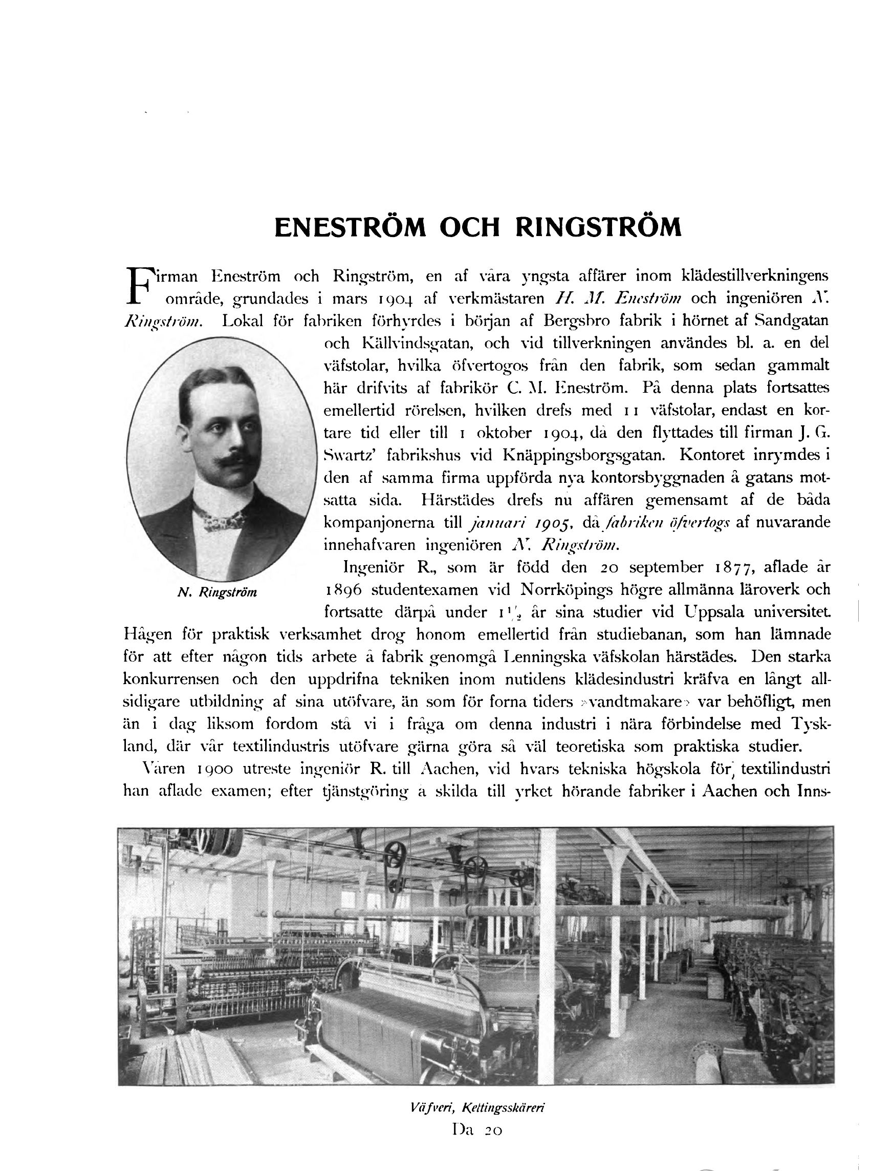 Firman Eneström och Ringström, en af vära yngsta affärer inom klädestillverkningens