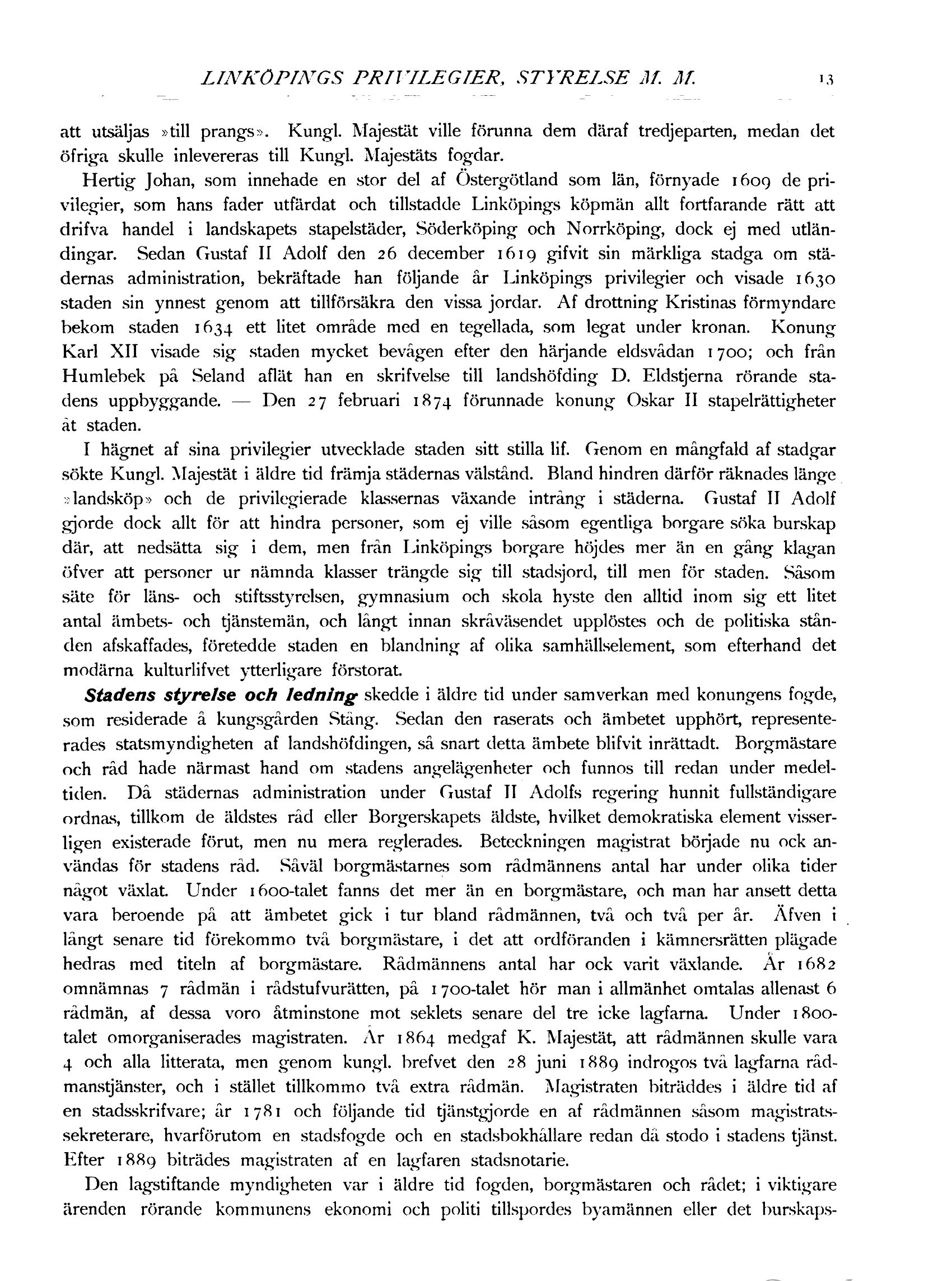 städernas administration, bekräftade han följande är Linköpings privilegier och visade 1630
