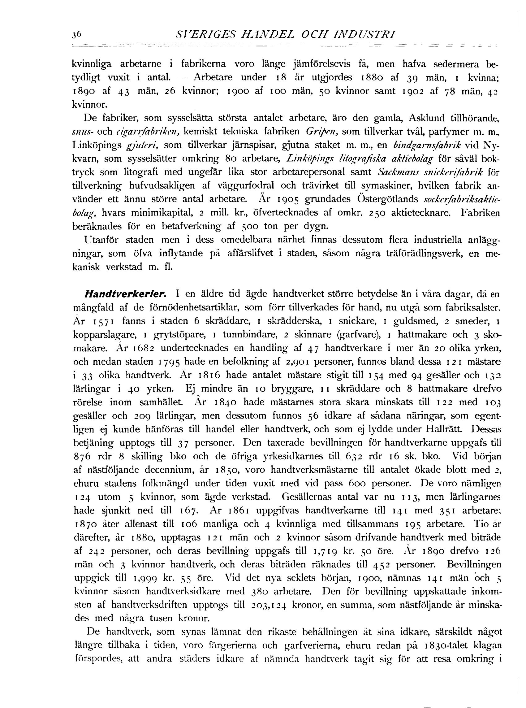 Linköpings gjuteri, som tillverkar järnspisar, gjutna staket m. m., en bindgamsfabrik vid