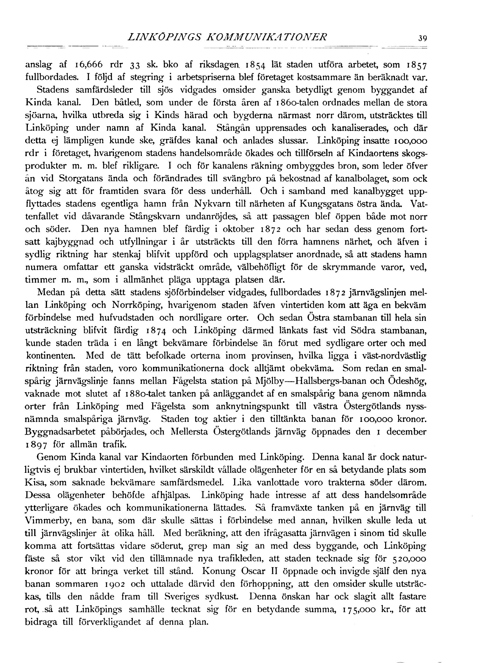 detta ej lämpligen kunde ske, gräfdes kanal och anlades slussar. Linköping insatte 100,000