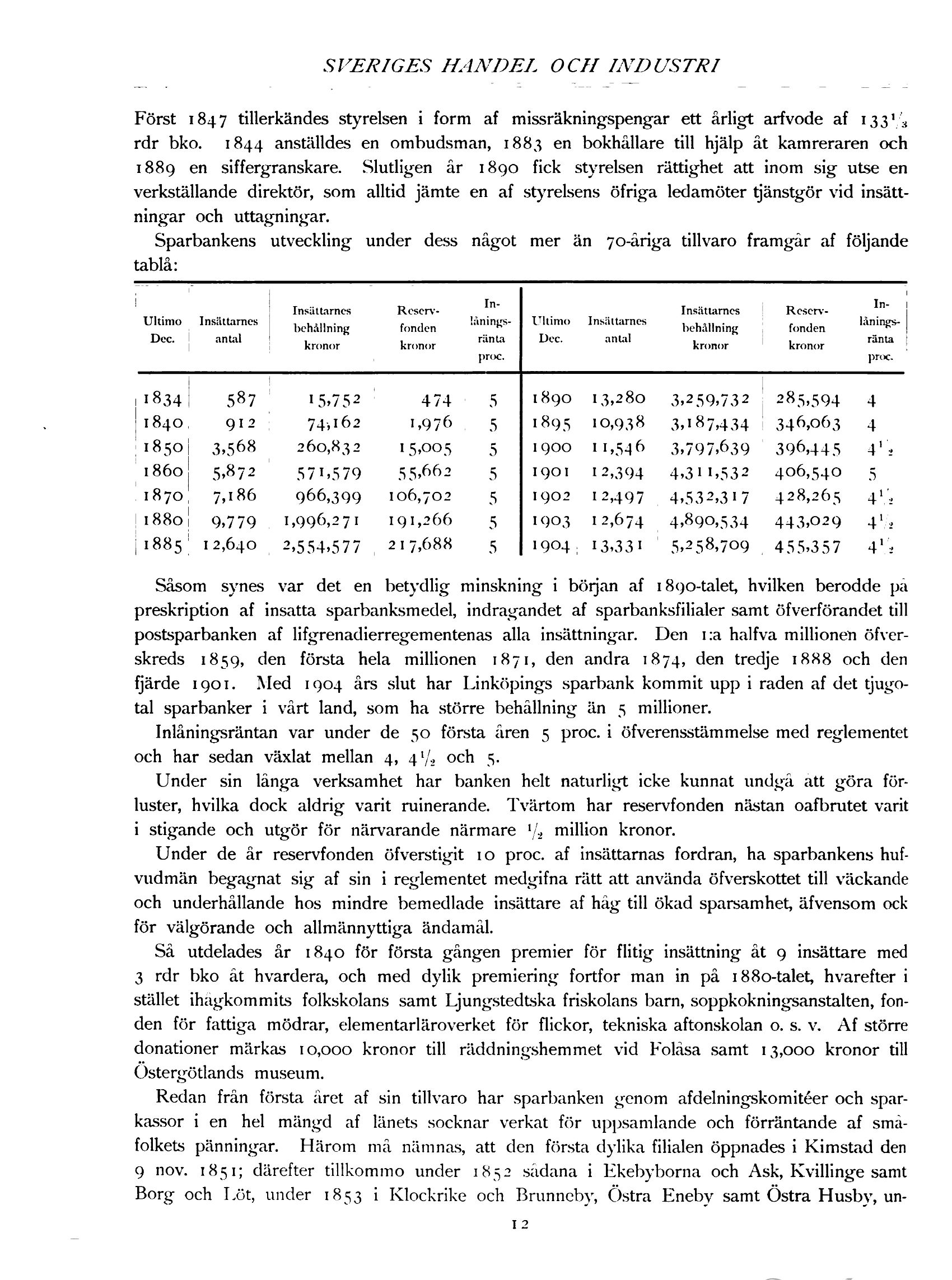 fjärde 1901. Med 1904 års slut har Linköpings sparbank kommit upp i raden af det