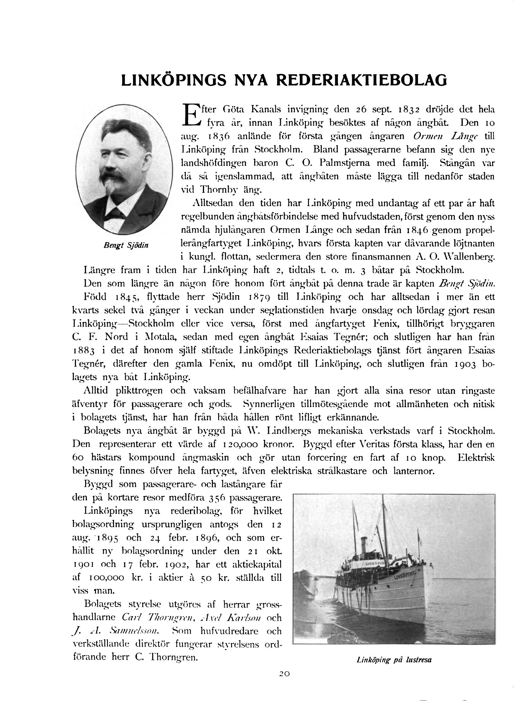 propel-Bengt Sjödin lerångfartyget Linköping, hvars första kapten var dåvarande löjtnanten