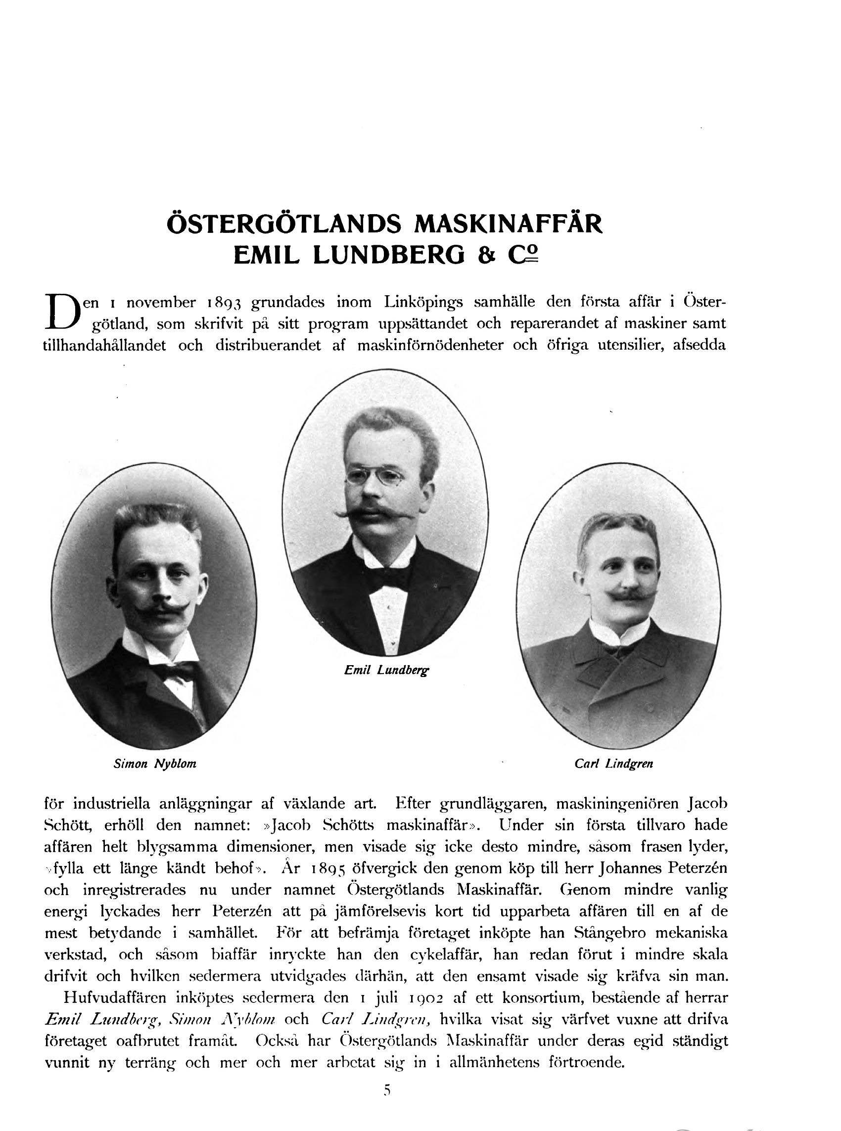 företaget oafbrutet framåt. Också har Östergötlands Maskinaffär under deras egid ständigt