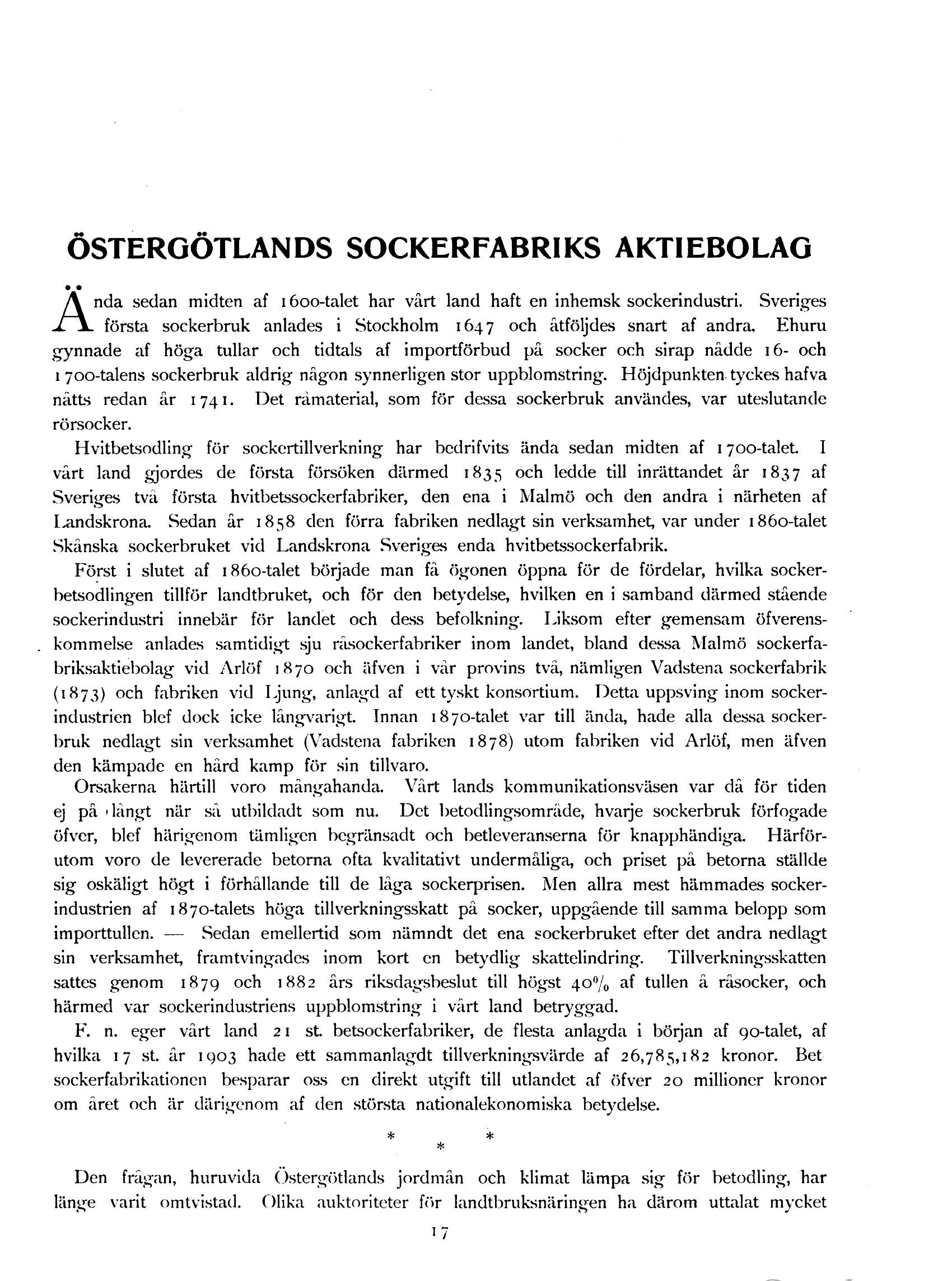 härmed var sockerindustriens uppblomstring i vårt land betryggad.