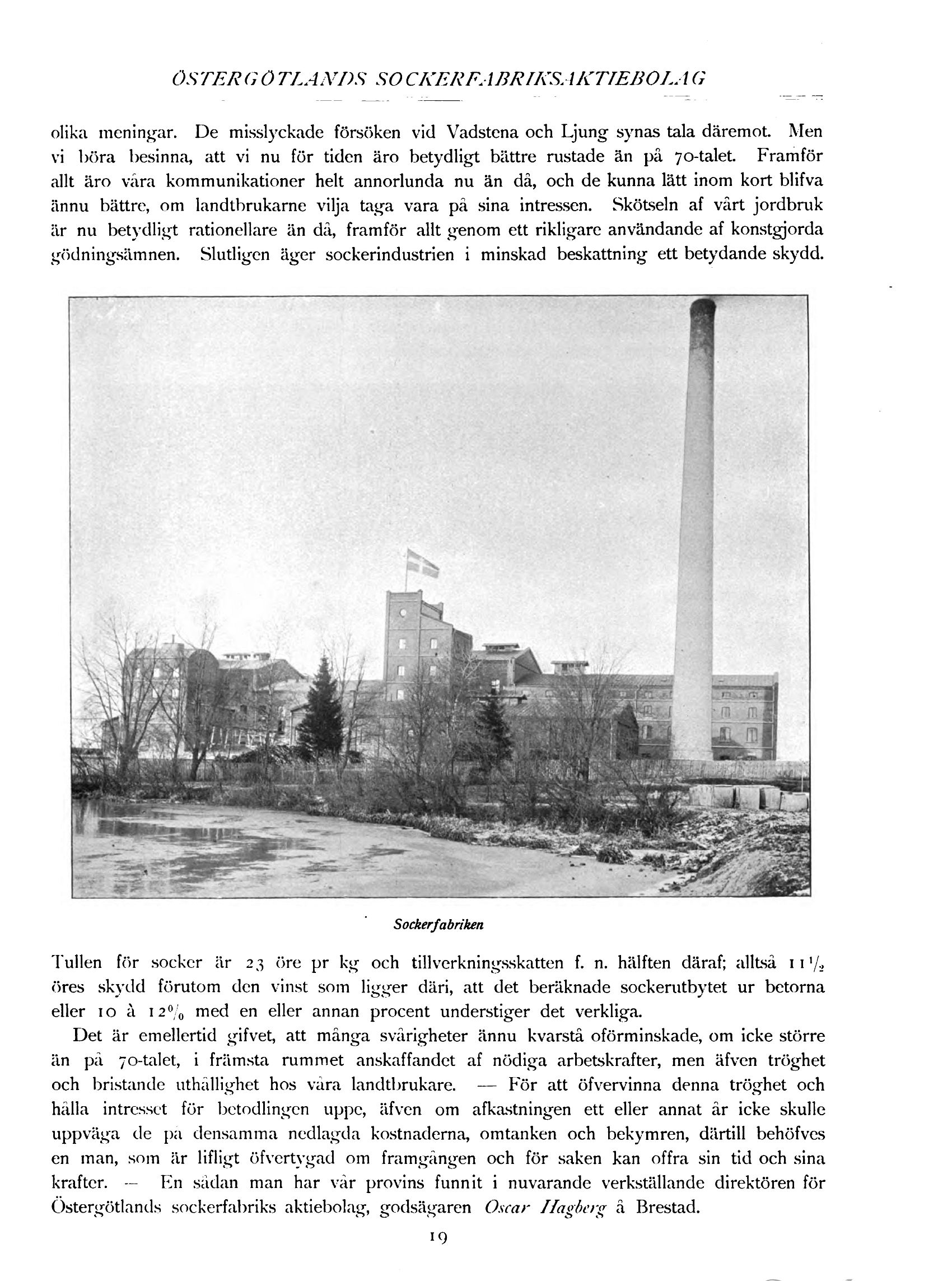 Östergötlands sockerfabriks aktiebolag, godsägaren Oscar Ilagberg å Brestad.