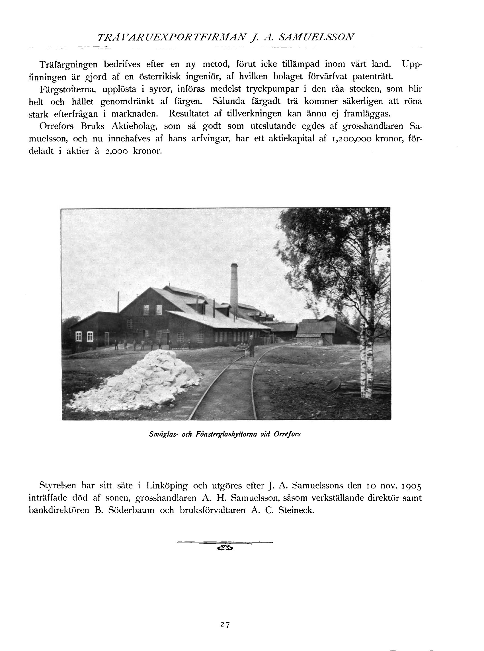Samuelsson, och nu innehafves af hans arfvingar, har ett aktiekapital af 1,200,000 kronor,