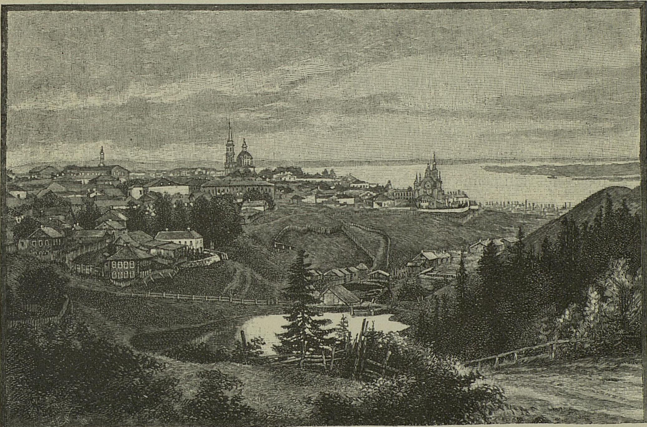 Nischnij-Novgorod og Kasan et malerisk Udseende. Baadene med deres Træræling og blaa-